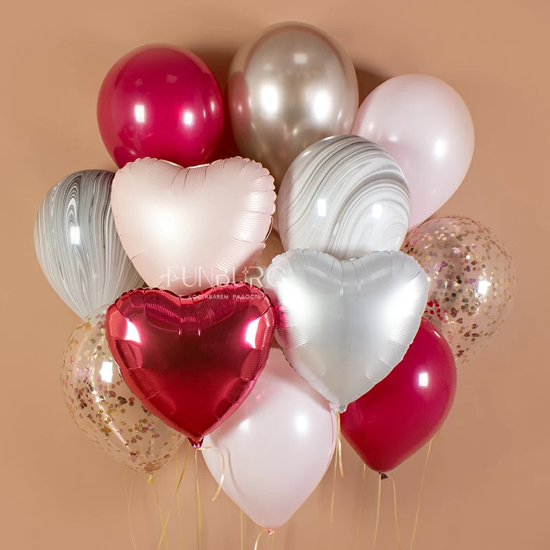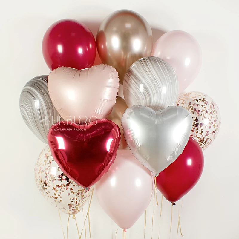 Необычный многогранный набор в котором мягкие светлые тона гармонично соединяются с контрастными всполохами насыщенного ягодного красного. В нем нежно-розовые матовые, аппетитно-вишневые оттенки, мерцающие шарики цвета «шампань», мраморные черно-белые «агаты», сияющие сердечки и шарики со сверкающим конфетти сплетаются в сложную гармонию, которой хочется любоваться. Мы уверены, вы знаете того, кому сочетание точно понравится.