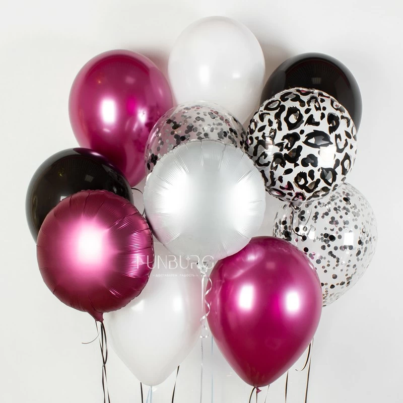 Для дерзкой, смелой, яркой, необычной и с чувством юмора, этот набор шариков идеален для девушки, которой присущи все эти качества! А с надписью как на нашем примере – особенно, но только убедитесь, что получательница оценит ваш юмор, а не затаит на вас обиду 😉 В любом случае, надпись на шаре мы можем сделать любой (а оформление сохраним), или вовсе ее убрать – состав набора вы всегда можете менять, как захочется!