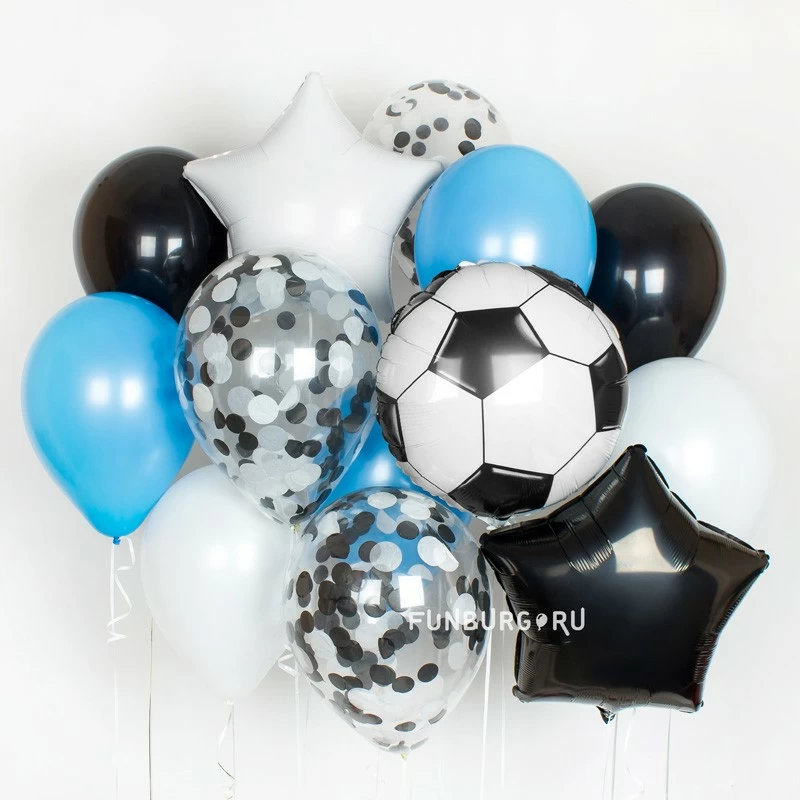 Букет воздушных шаров для футбольного болельщика! По вашему желанию набор может быть выполнен в цветах любимого футбольного клуба!