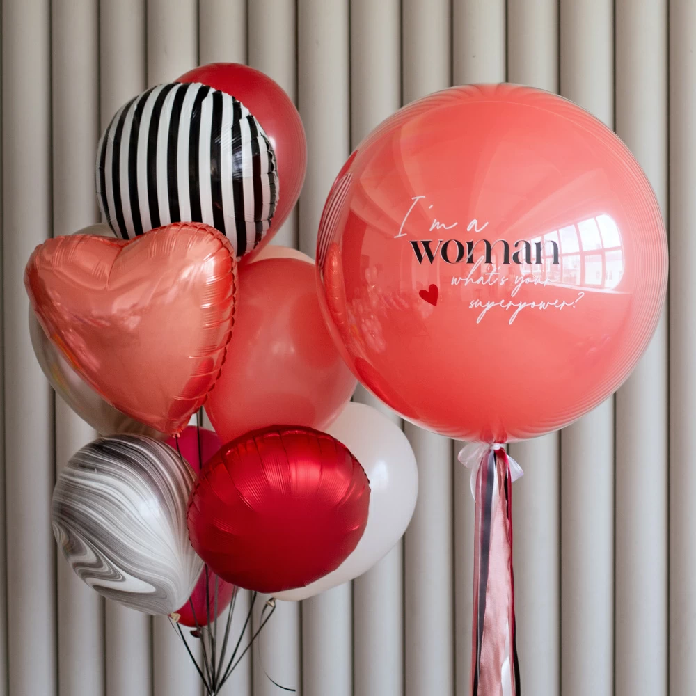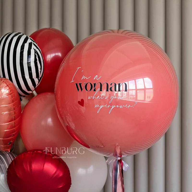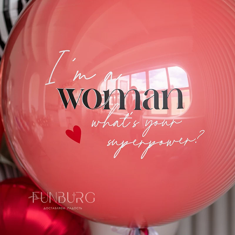 Большой зеркально-глянцевый шар красивого кораллового оттенка с надписью, подчеркивающей одну из самых невероятных суперсил и то, что у каждого из нас есть своя. Хотя, надпись, как всегда, мы можем сделать любую, сохранив стиль оформления, только скажите нам о своих пожеланиях 😉