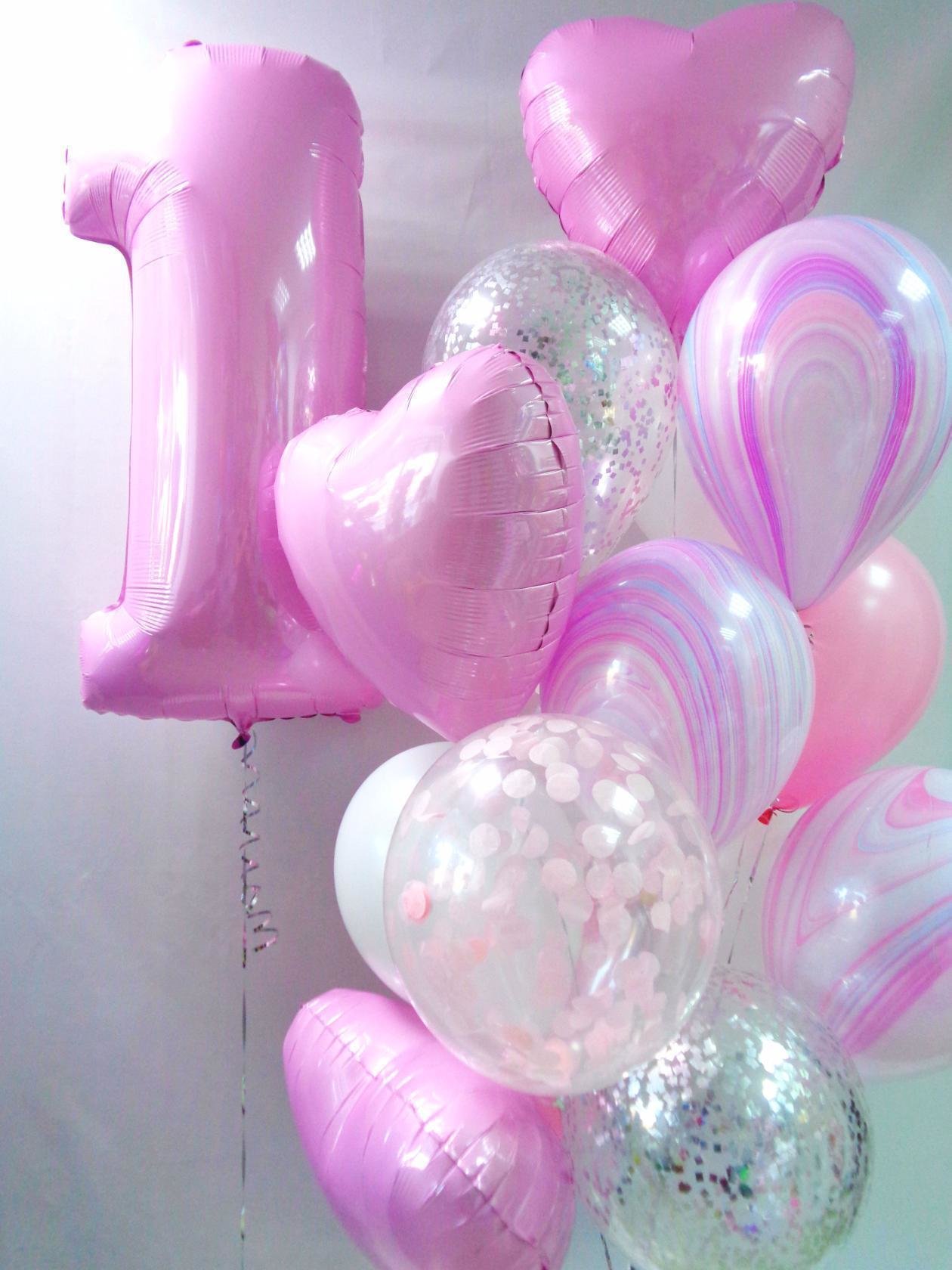 2)фольгированная цифра 1 розовая