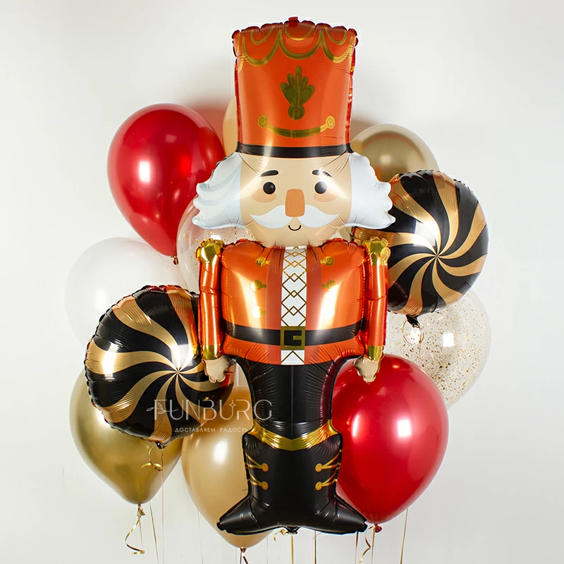 Сказочный набор с обаятельным Щелкунчиком и облаком шариков, идеально дополняющим торжественный наряд героя. Для самого доброго Нового года!