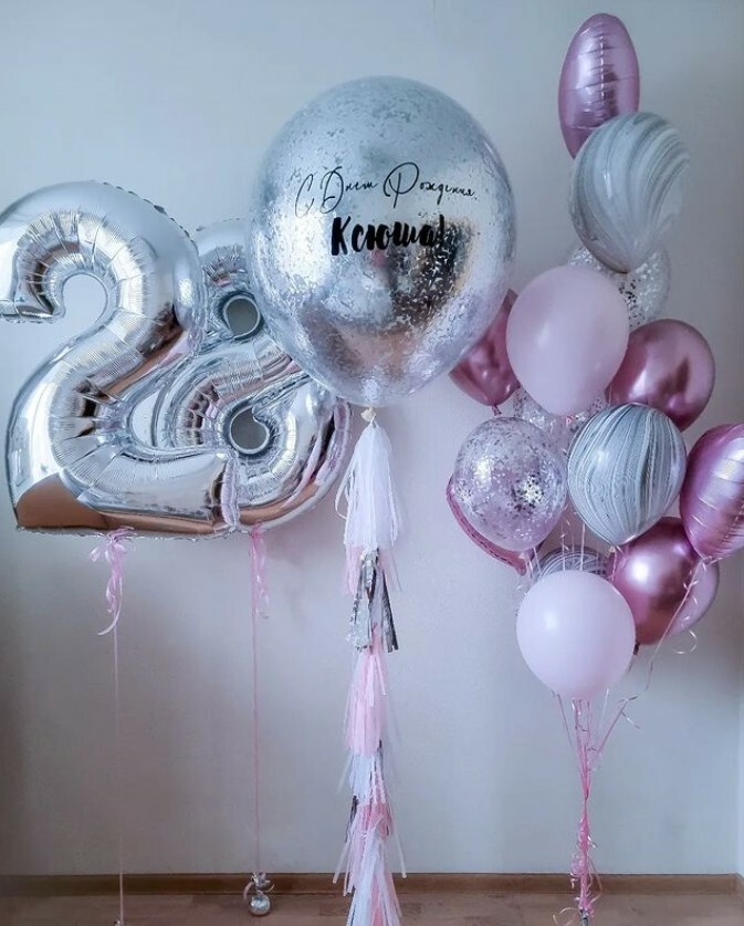 большой шар конфетти + ваша надпись.
