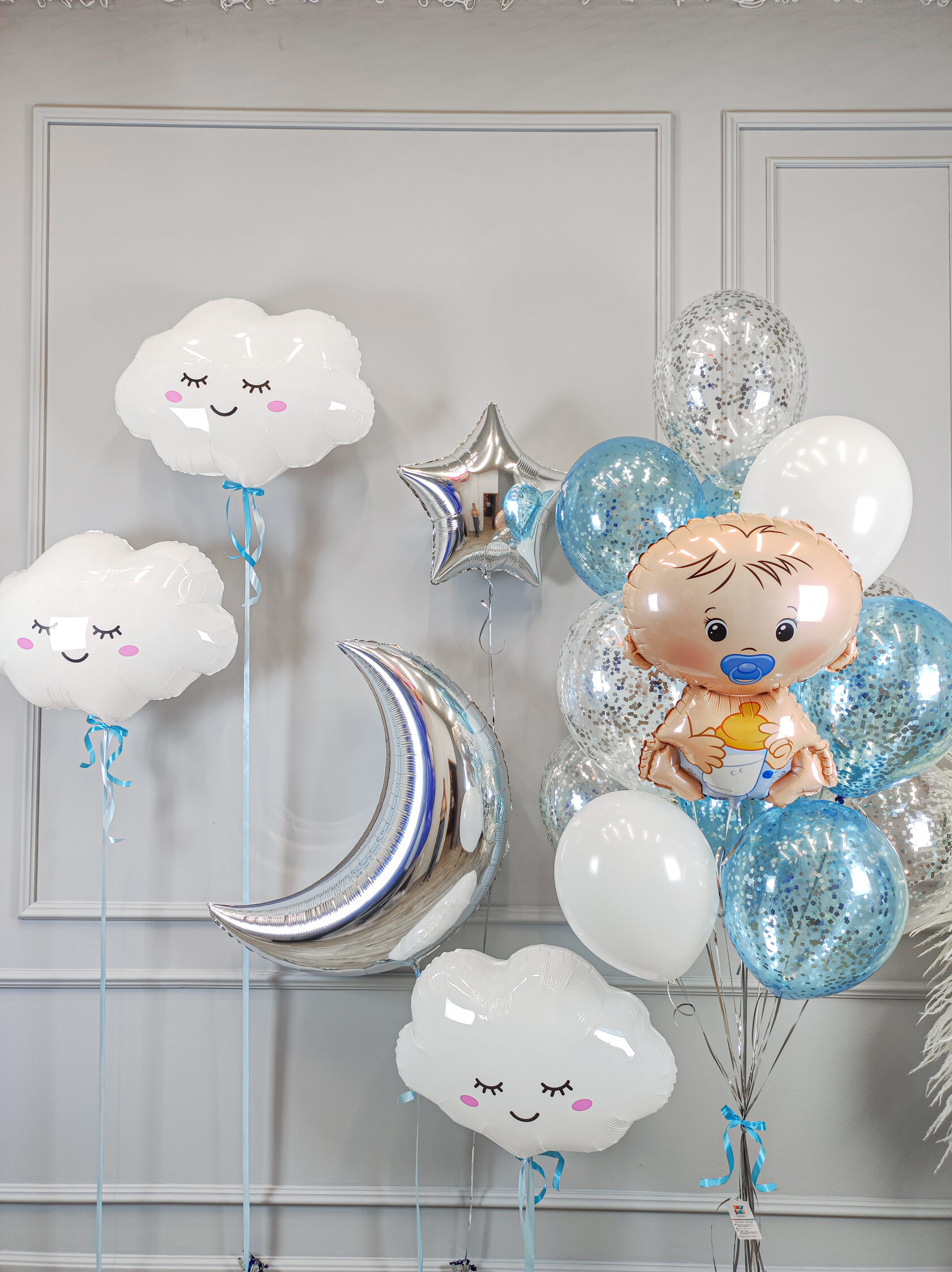 3 фольгированных облака каждый на отдельном грузике.