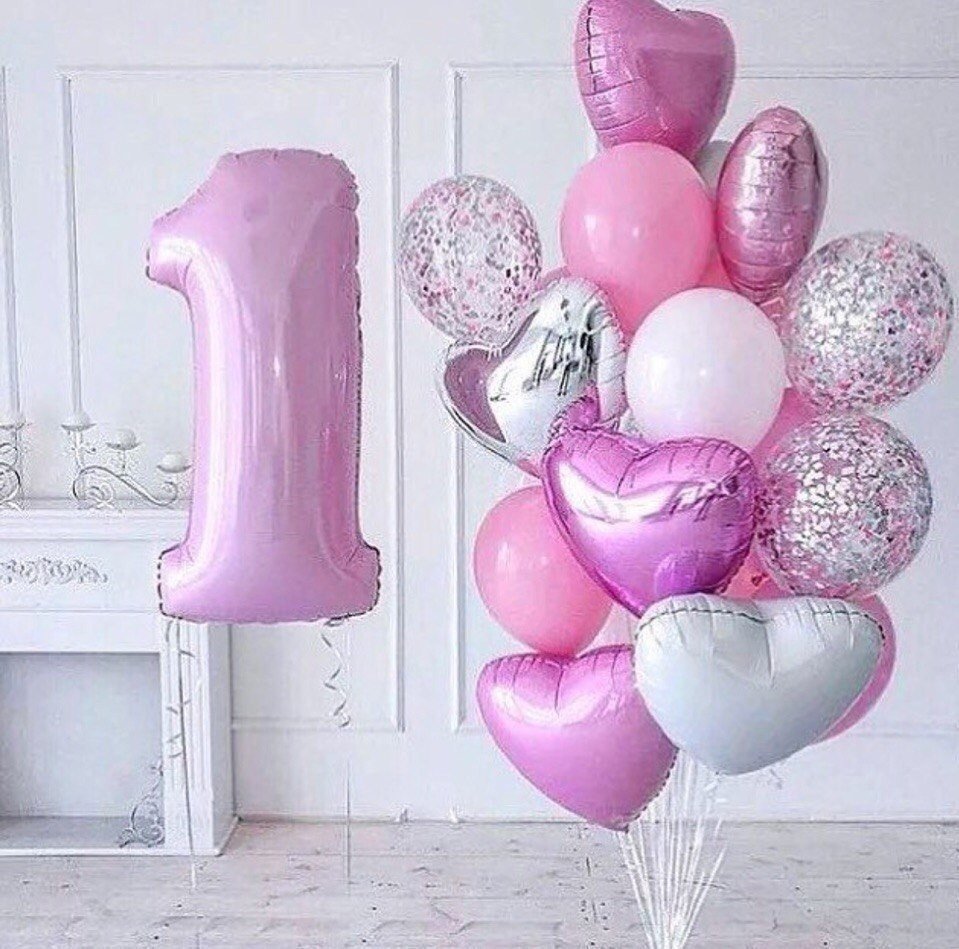 Облако гелиевых шаров “Нежность” с цифрой один на день рождения