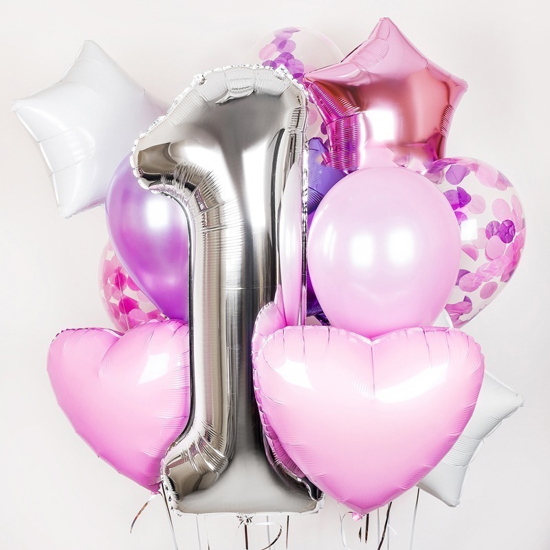 Набор шаров на 3 года с розовой коробкой-сюрприз