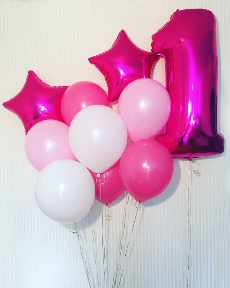 2)фольгированная цифра 1 фуксия