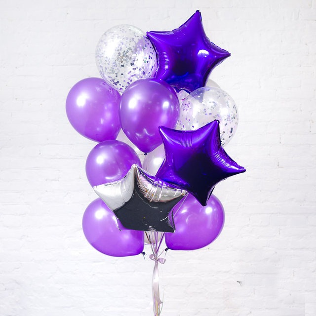 Облако воздушных шаров “Фиалка” с шарами конфетти