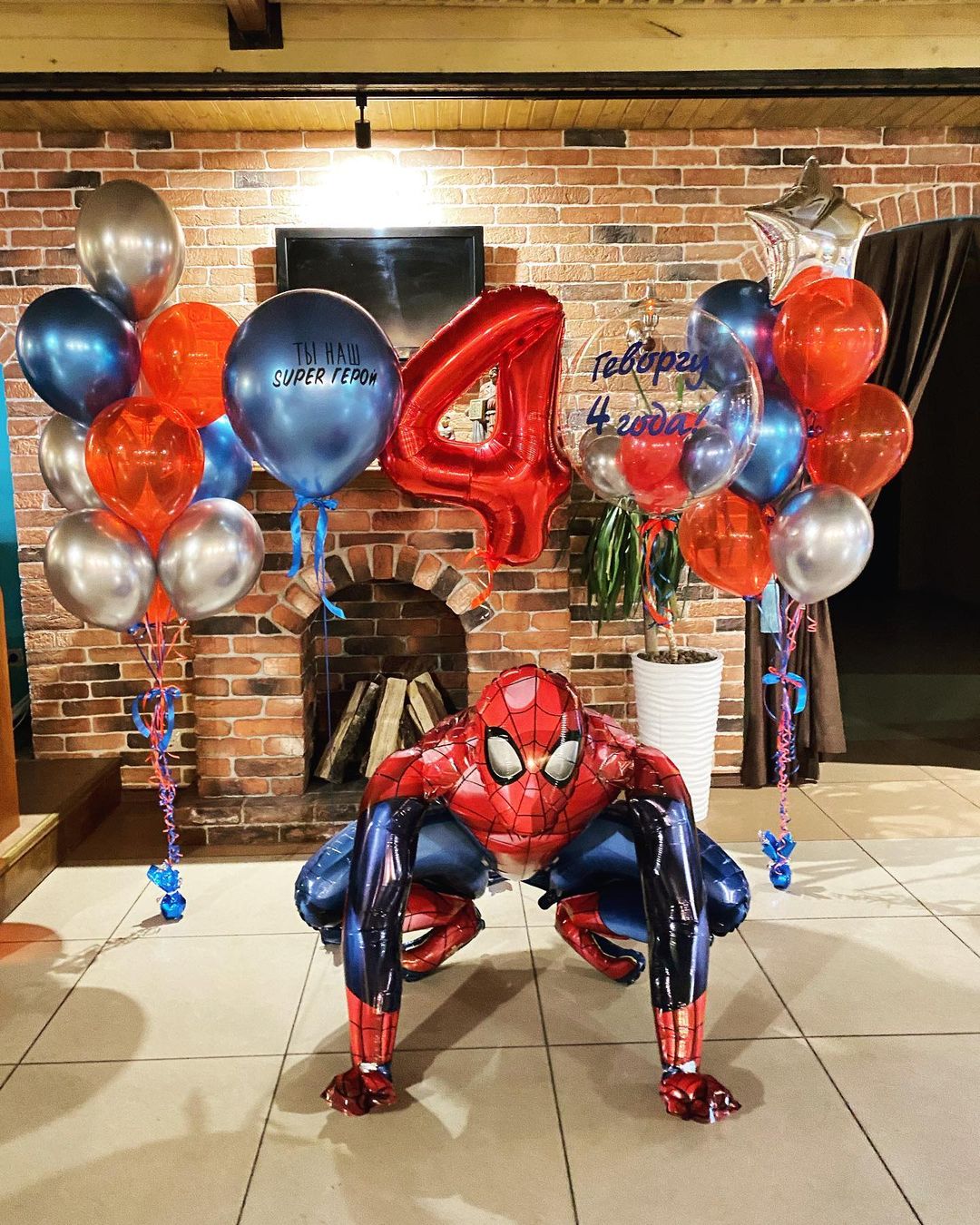 Оформление Дня Рождения в стиле “Человек-паук” с цифрой и большими шарами