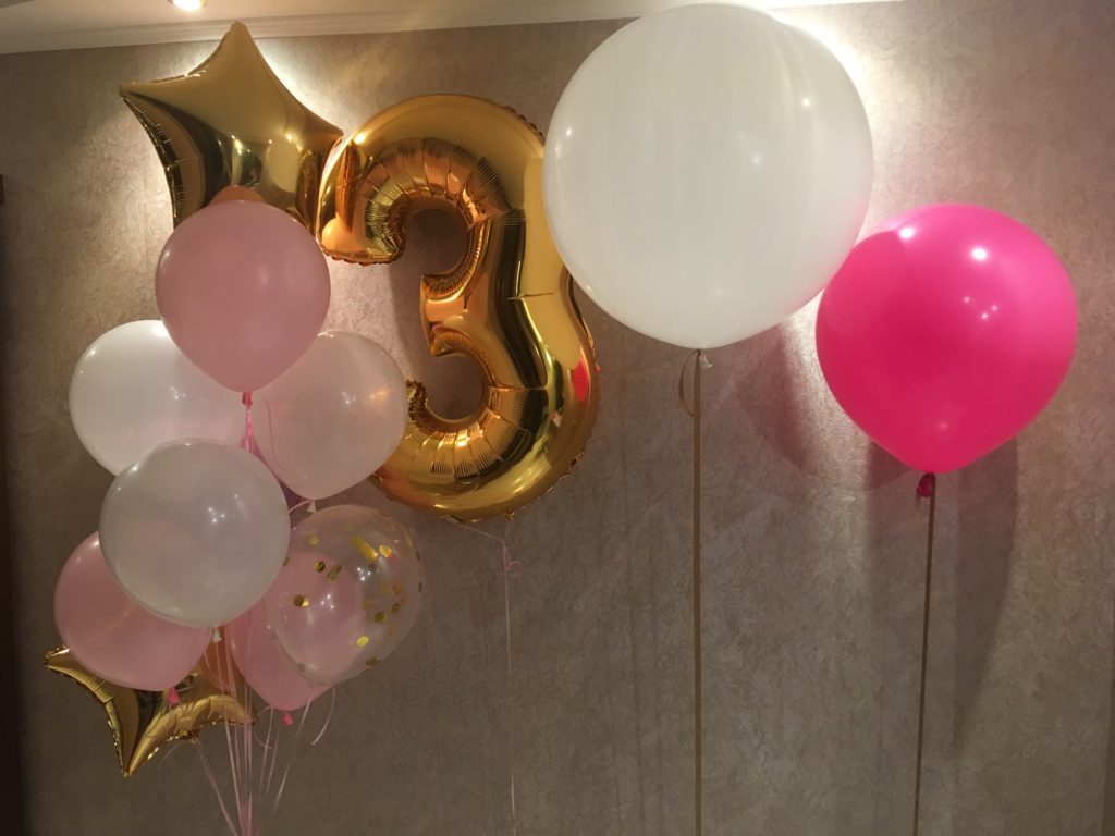 Оформление из нежно-розовых шаров для девочки на три года №13