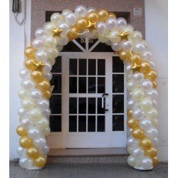 Оформление к открытию из белых и золотых шаров