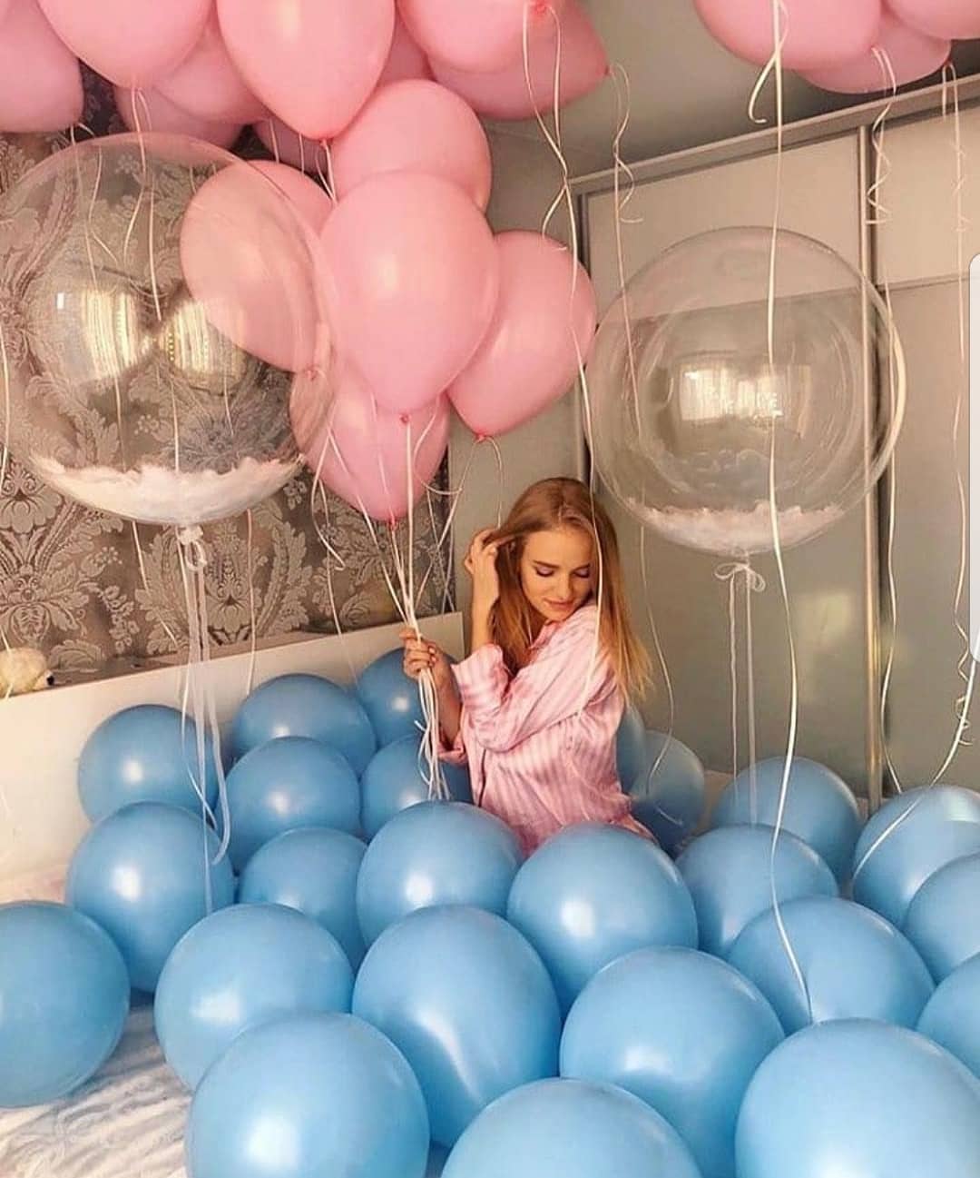 Оформление комнаты шарами под потолок, на пол и на грузике