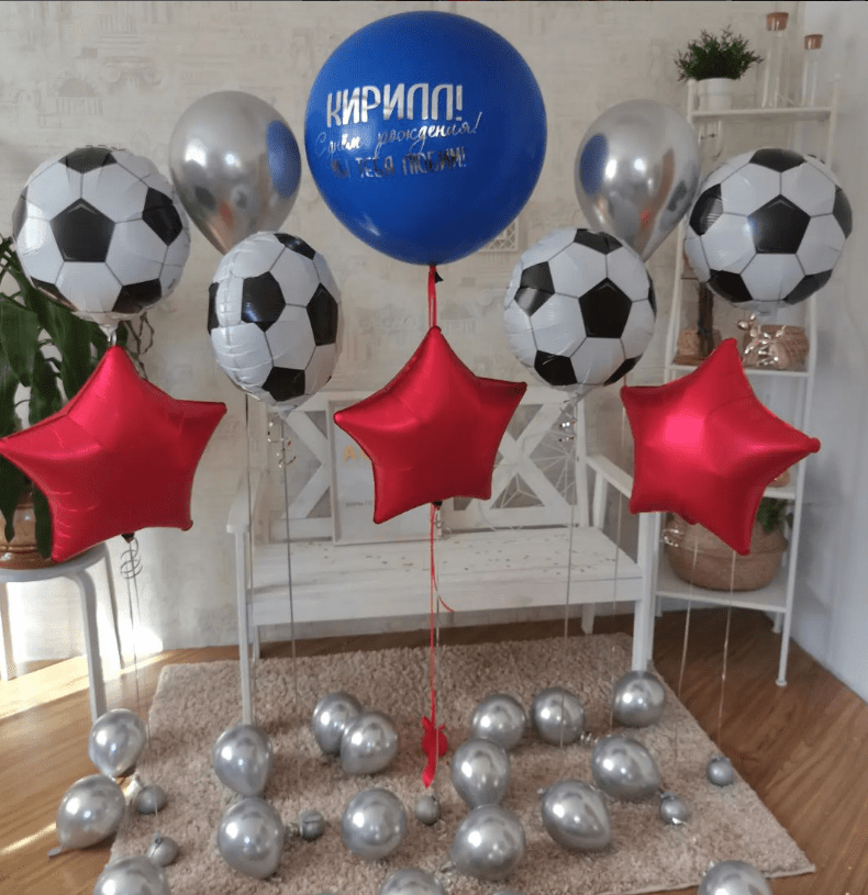 Оформление шарами комнаты для Дня рождения футболиста