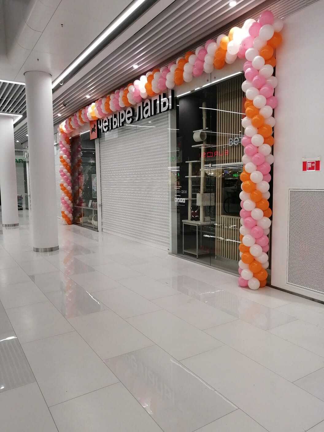Оформление воздушными шарами, к открытию магазина Четыре лапы