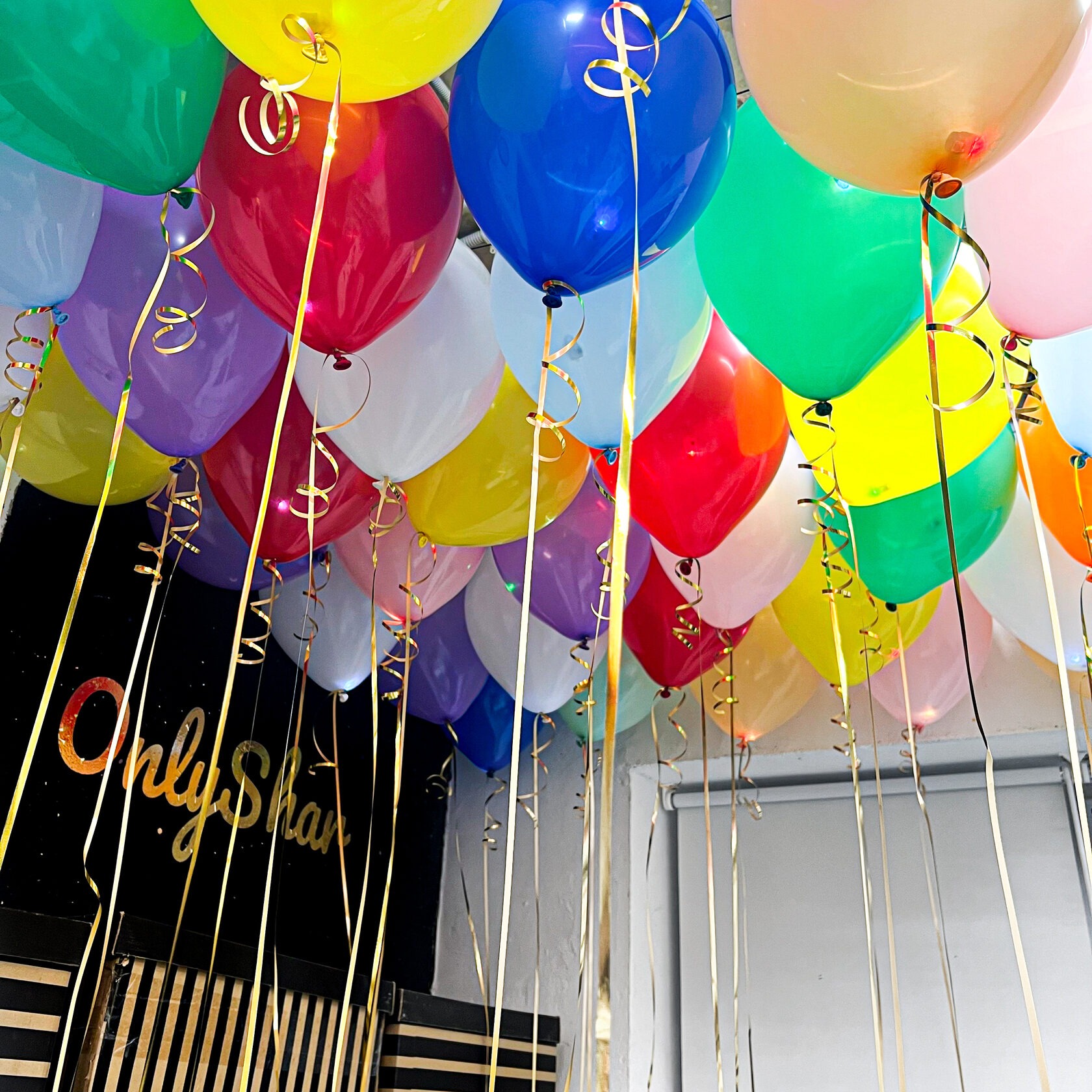 Разноцветные шары под потолок с надписью “С Днем Рождения”