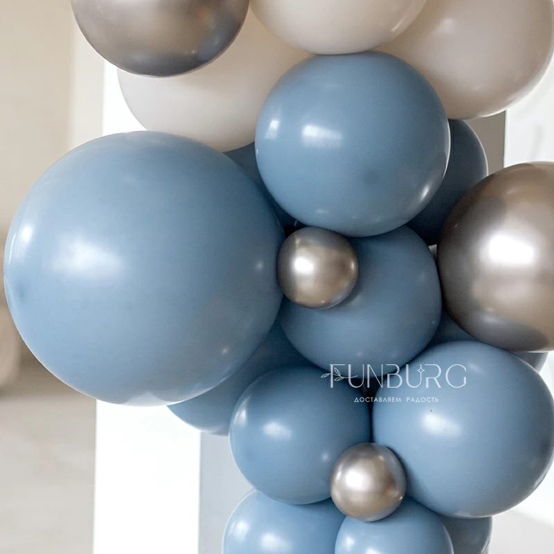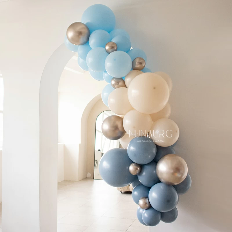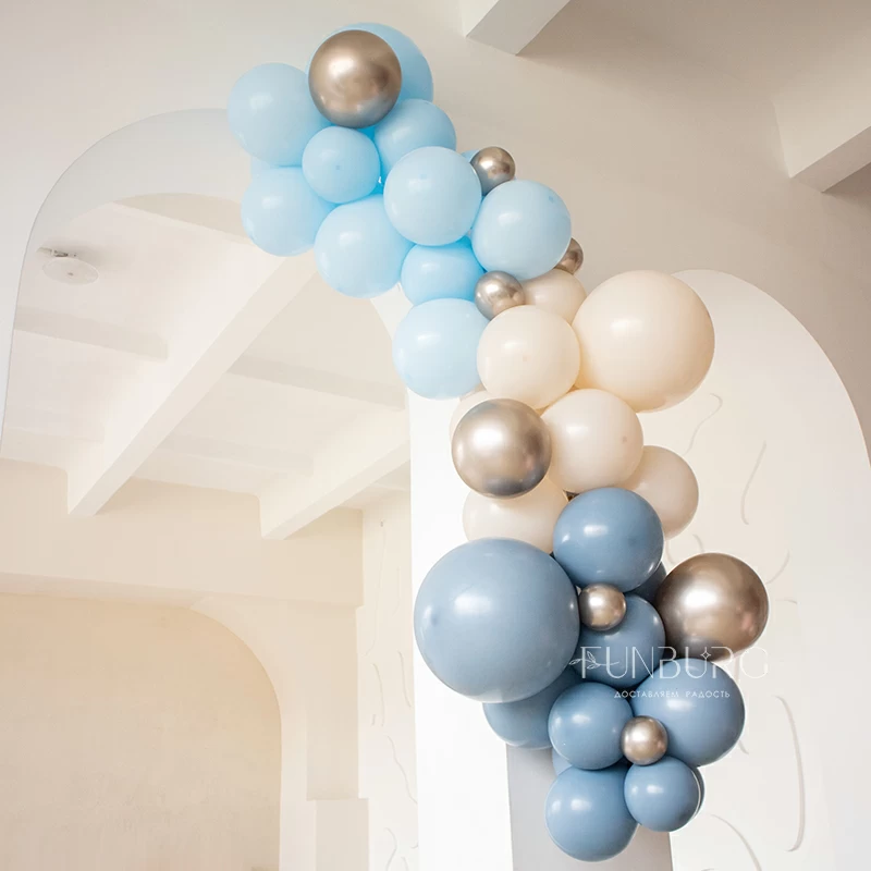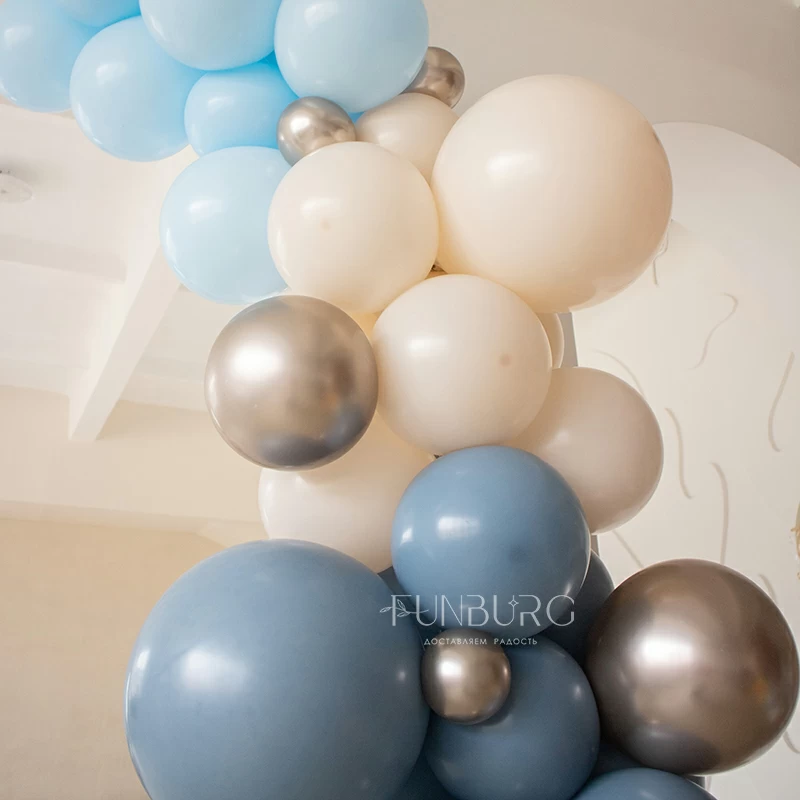 Разнокалиберная гирлянда – красивый и необычный вариант декора воздушными шарами! Как следует из ее названия, гирлянда изготавливается из воздушных шаров разного диаметра. Это могут быть не только простые латексные шары разного размера, но и шары с конфетти, мраморные шарики, шары из фольги разной формы (звезды, сердца, круги, сферы, и т.д.).