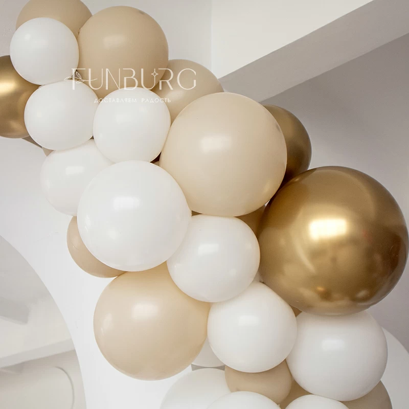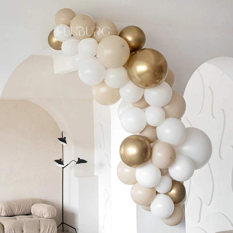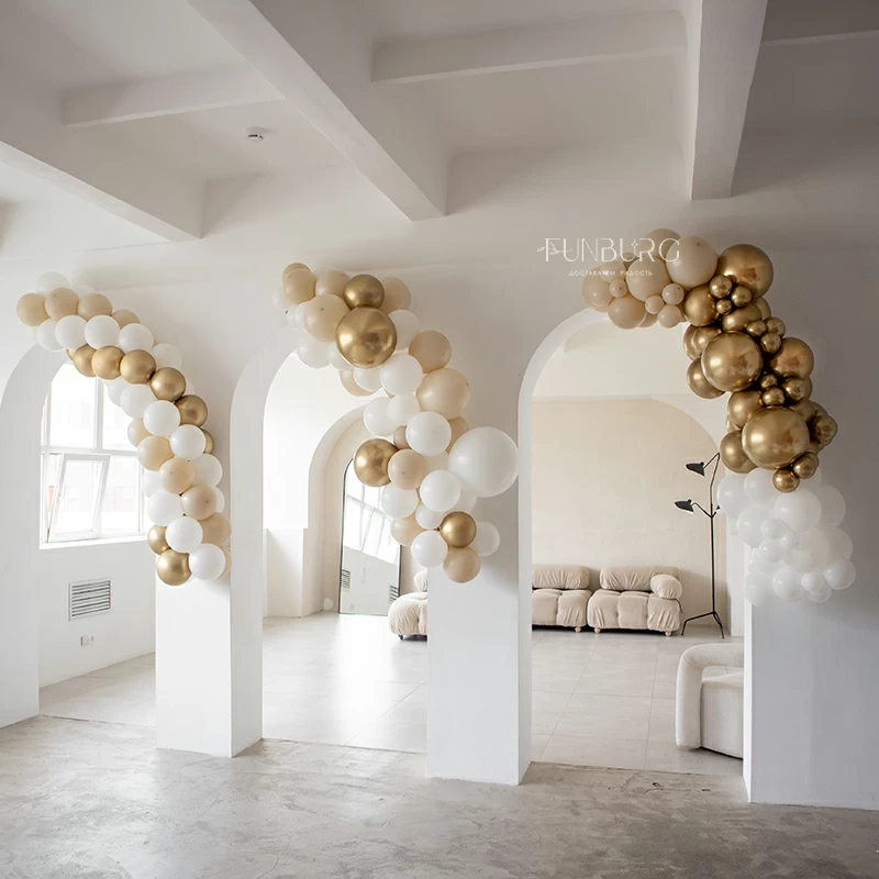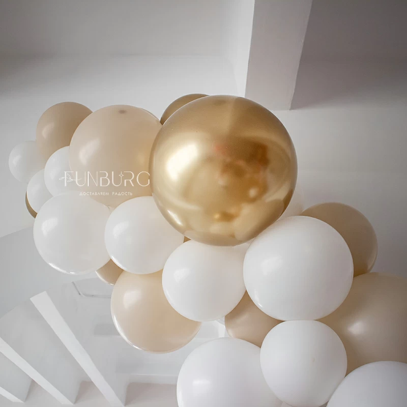 Разнокалиберная гирлянда – красивый и необычный вариант декора воздушными шарами! Как следует из ее названия, гирлянда изготавливается из воздушных шаров разного диаметра. Это могут быть не только простые латексные шары разного размера, но и шары с конфетти, мраморные шарики, шары из фольги разной формы (звезды, сердца, круги, сферы, и т.д.).