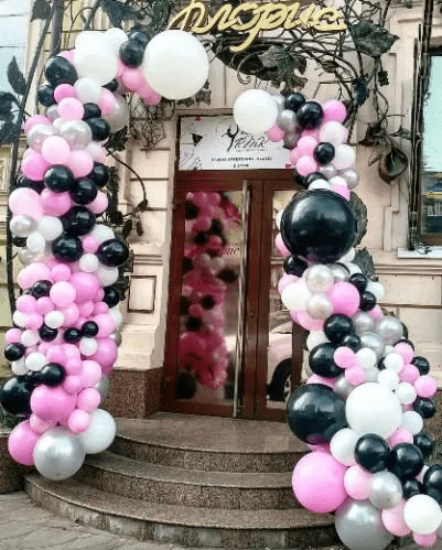 Разнокалиберная гирлянда в цветах: черный, розовый, белый и серебро