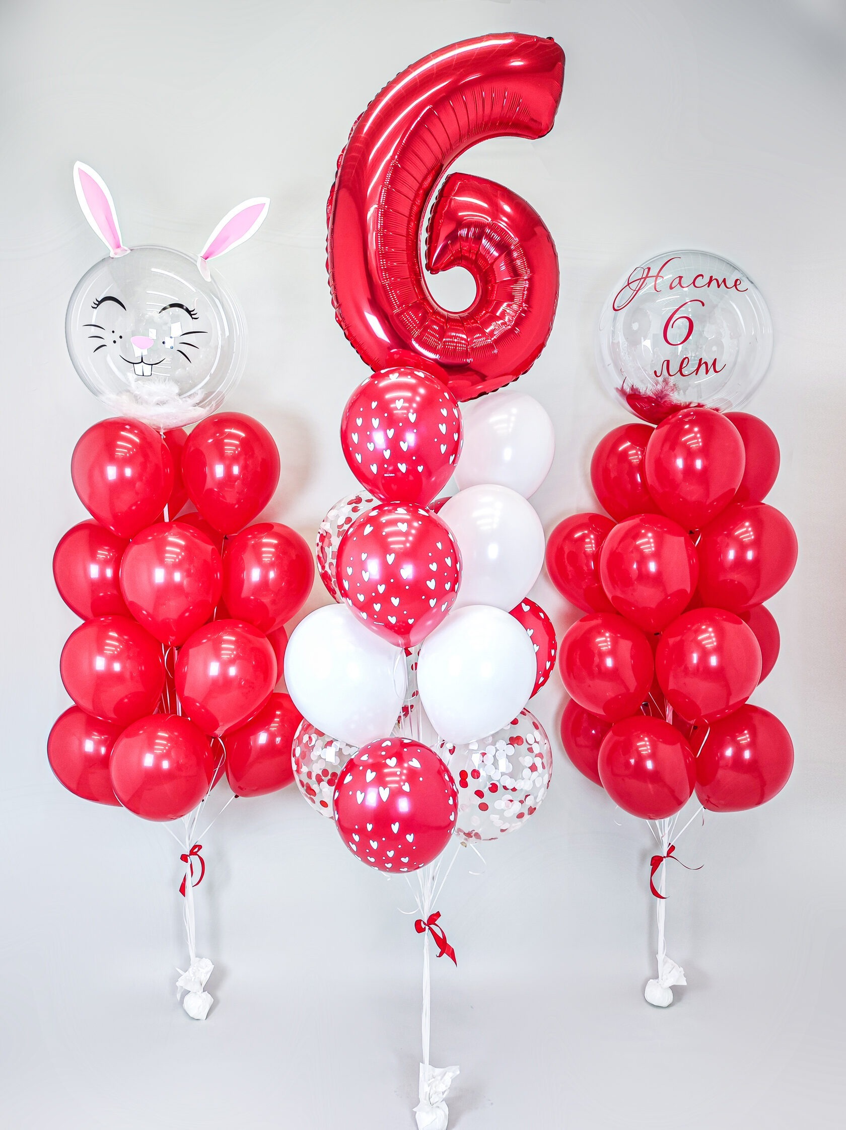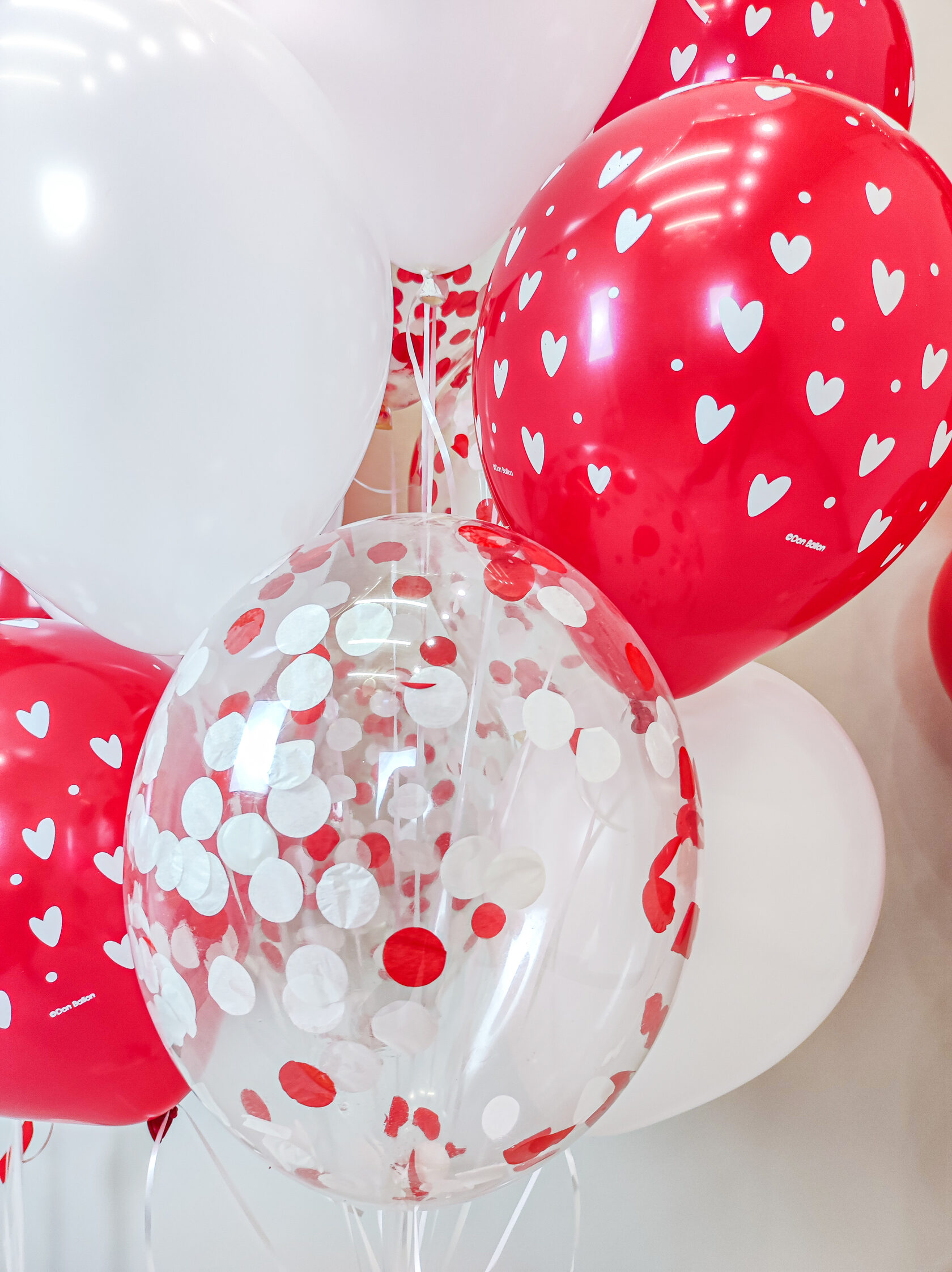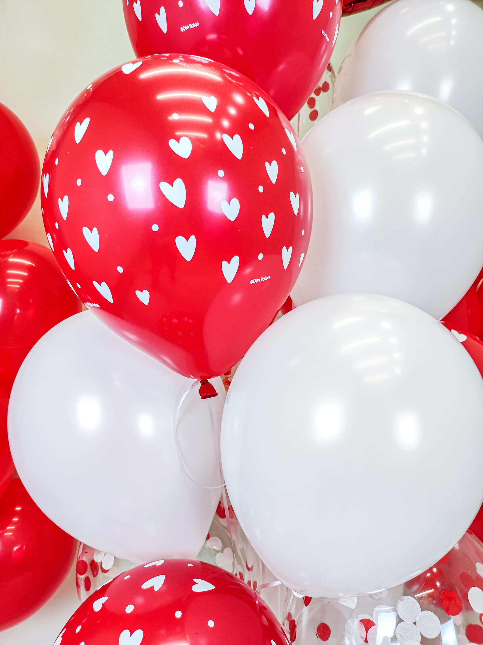 -латексный шар красных с рисунком белых сердец – 5 шт;