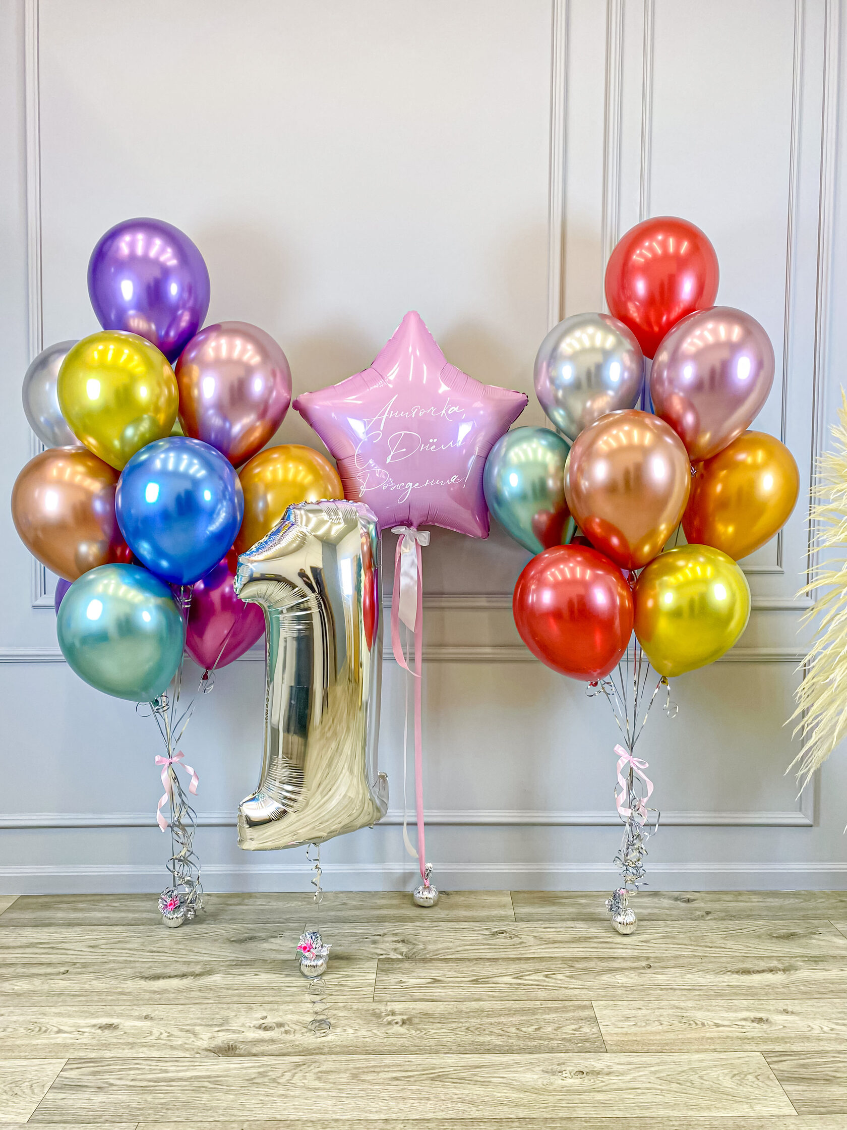 Фольгированная звезда розовая 80 см + ваша надпись.