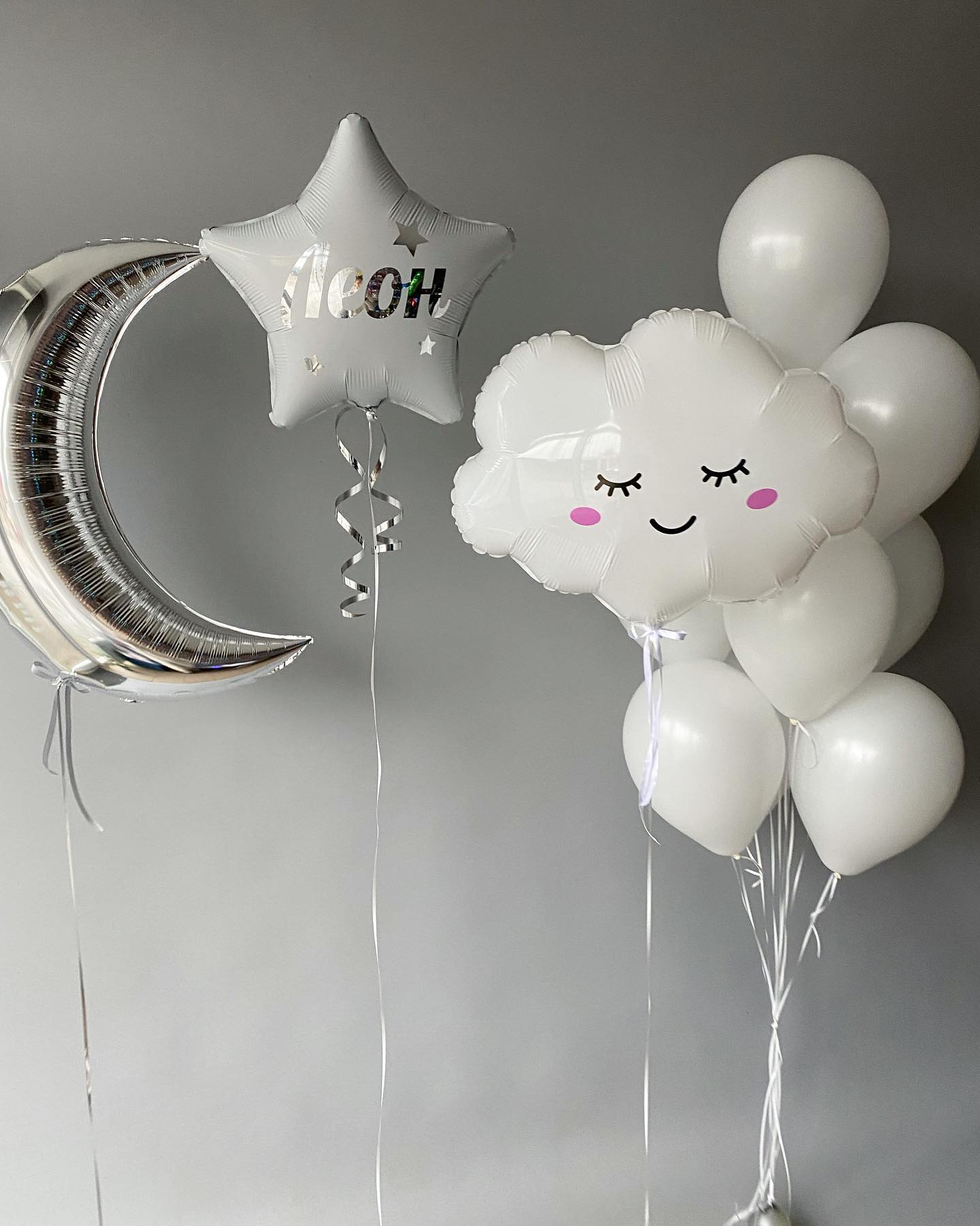 Фольгированная звезда 46 см белая + ваша надпись на грузике.