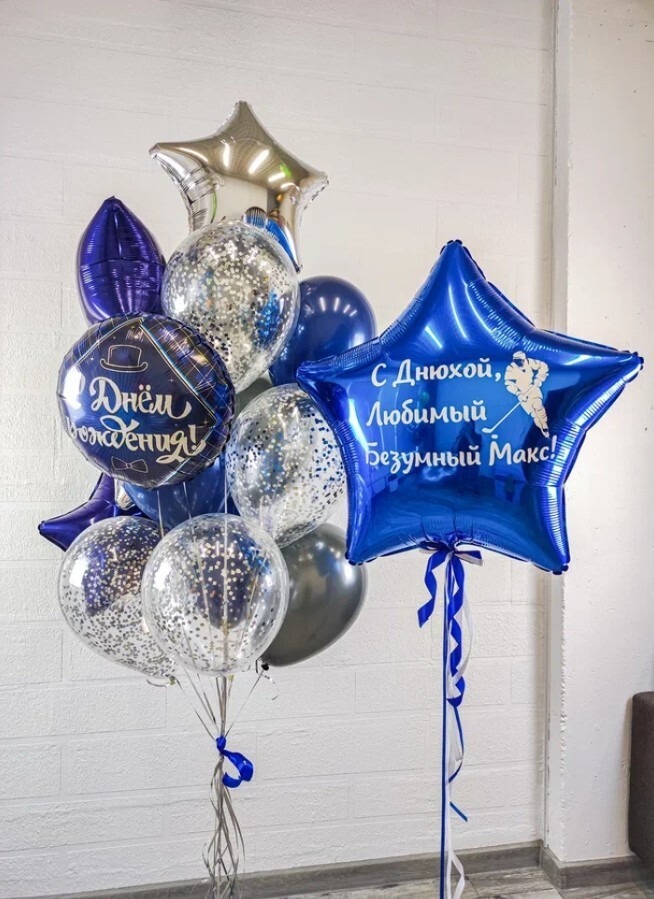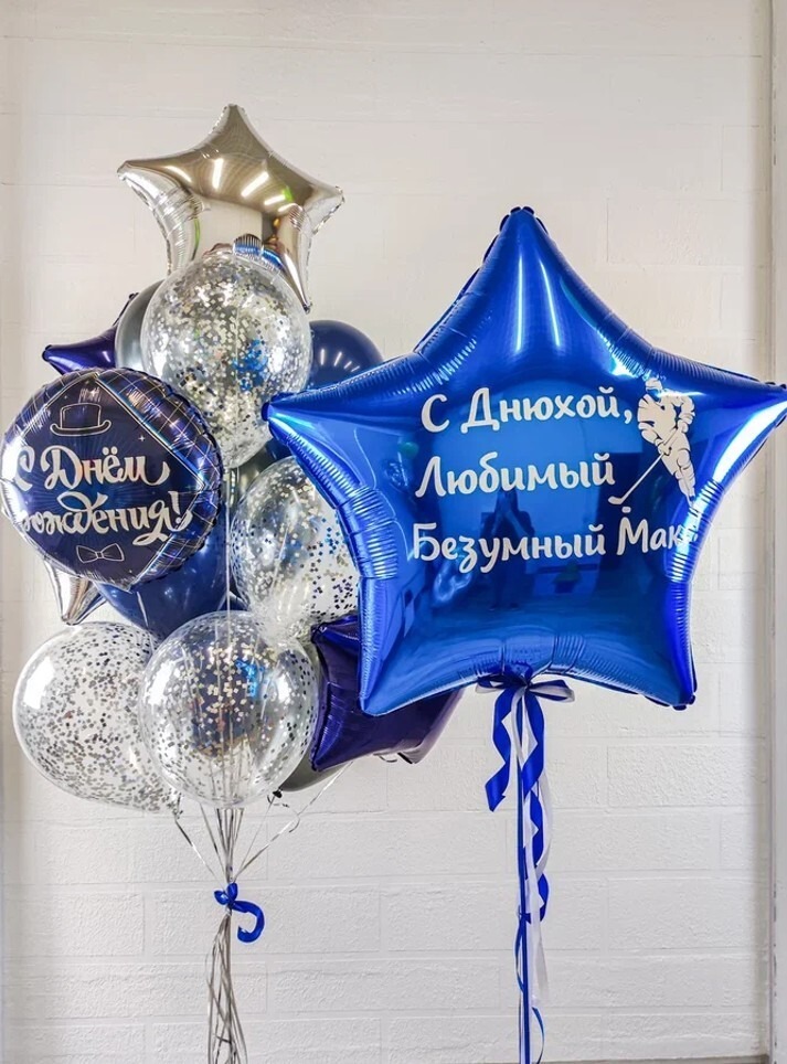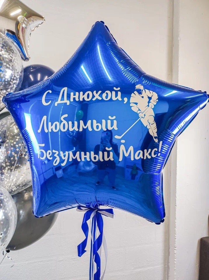 Фольгированная звезда синяя 80 см + ваша надпись.