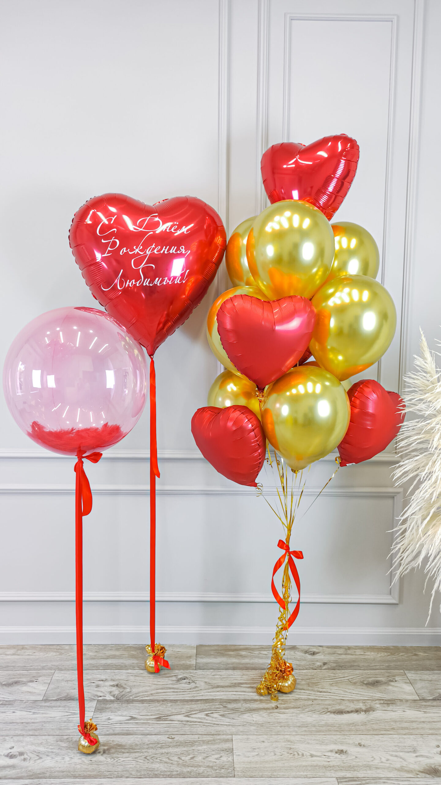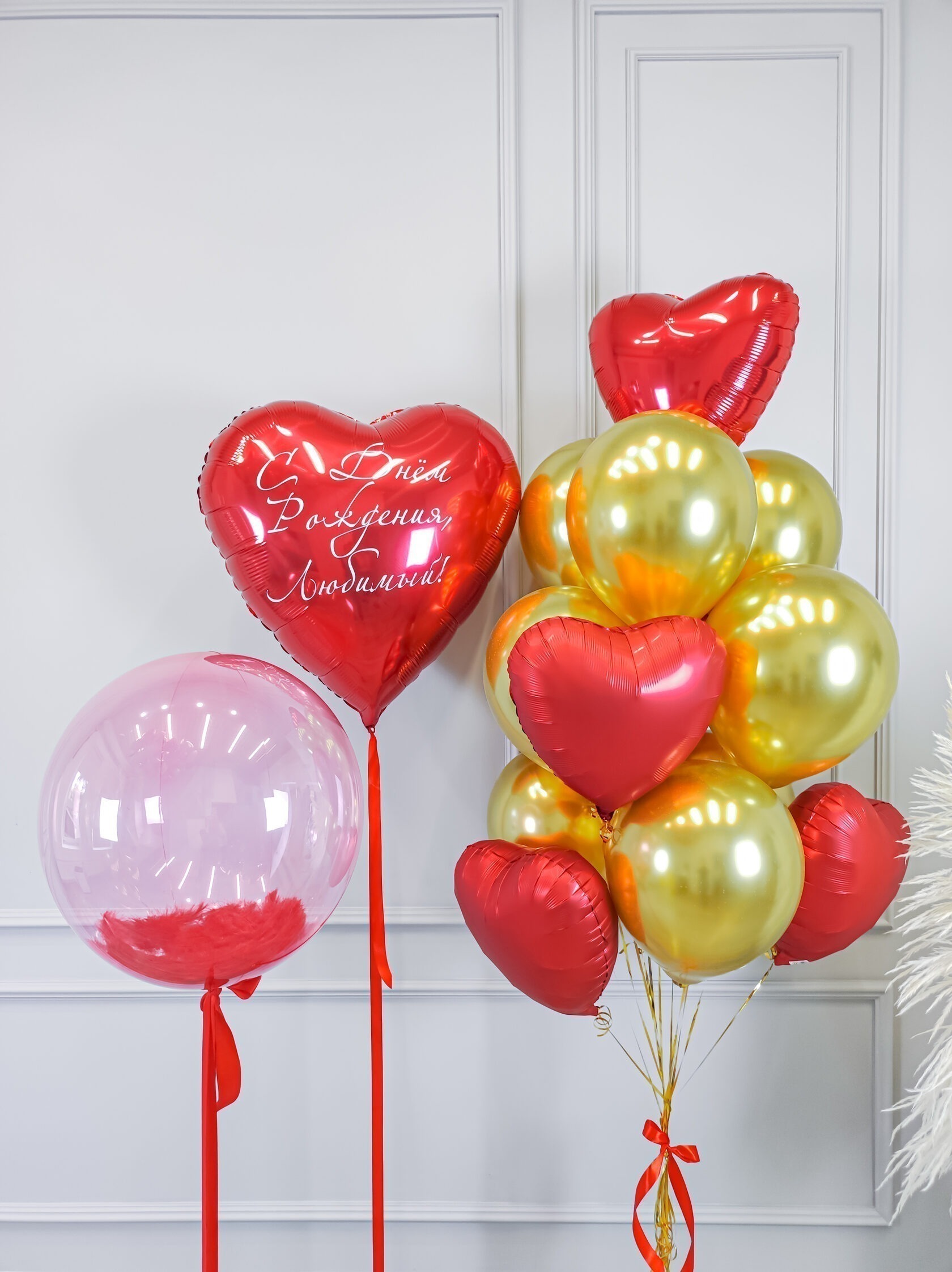Шар баблс красный + красные перья.