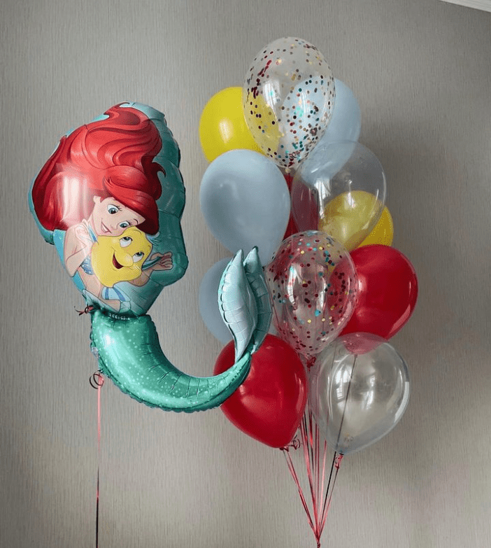 – 2 шара с конфетти (красный + голубой + золото круг)
