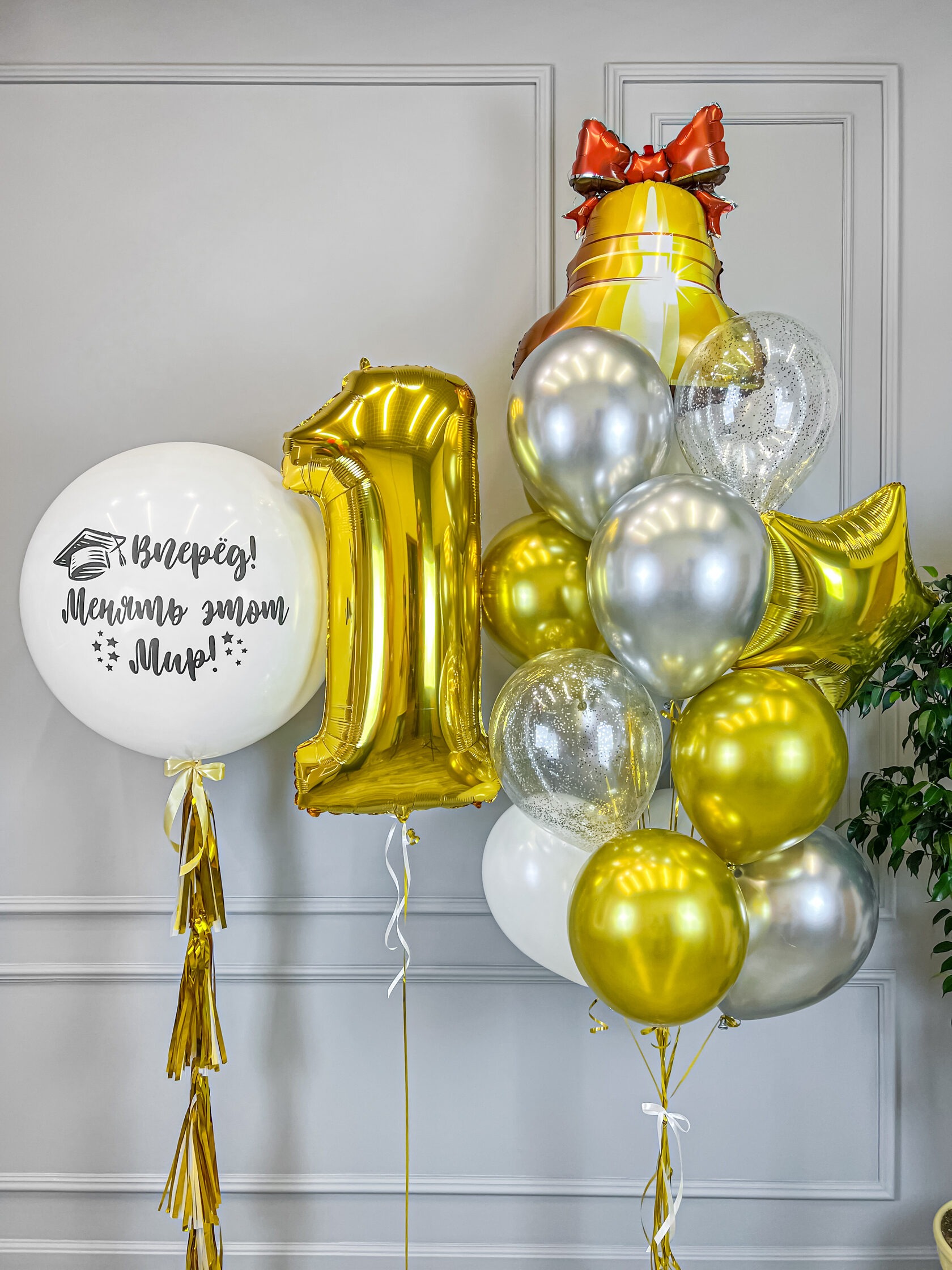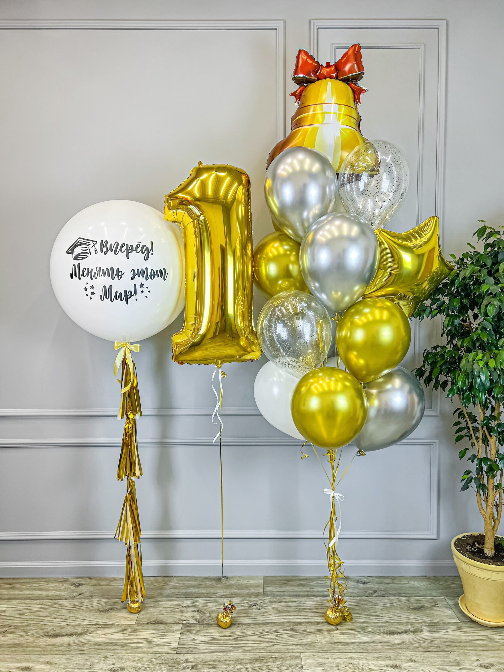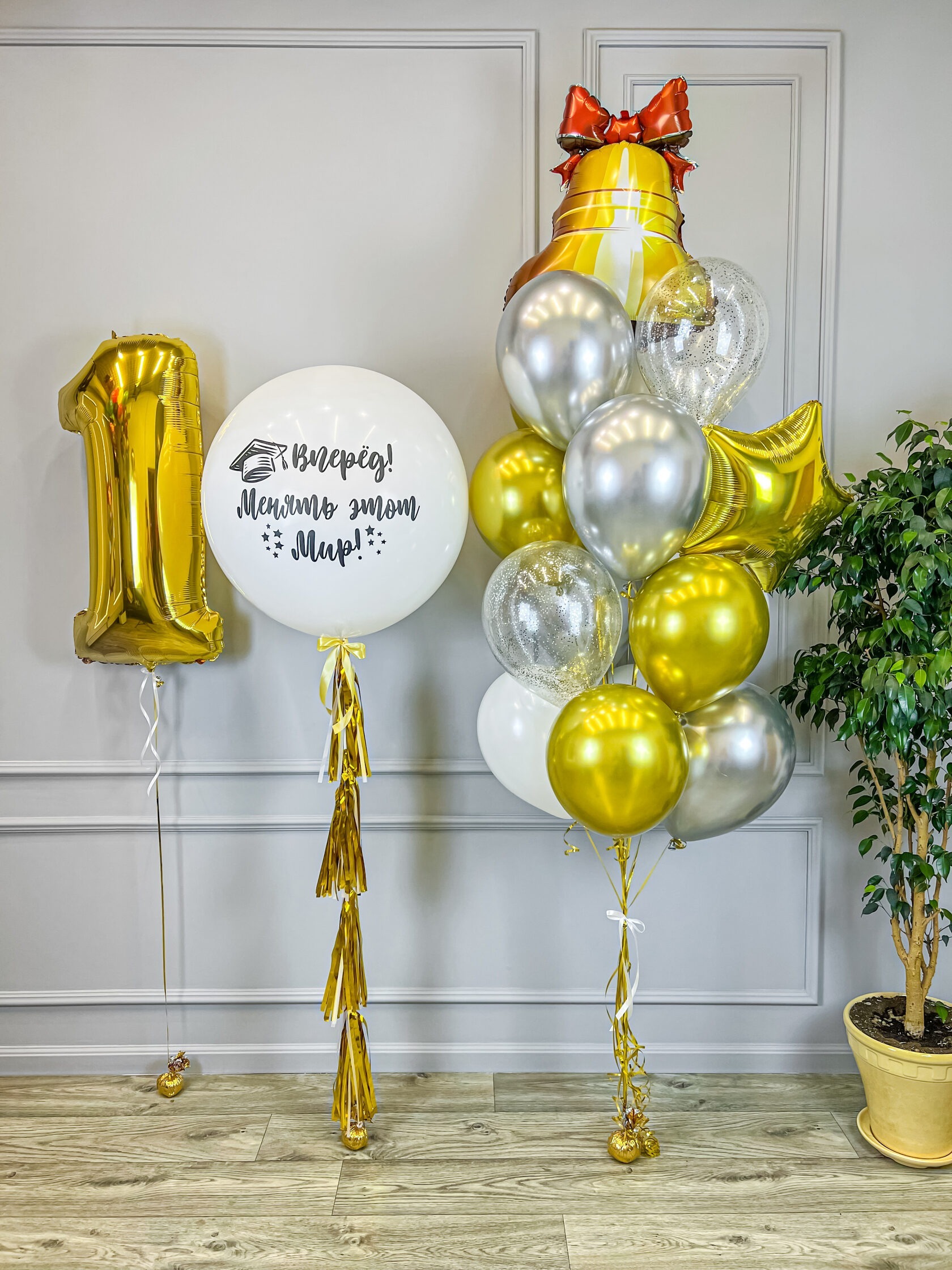 Сет гелиевых шаров на 1 сентября с колокольчиком и цифрой