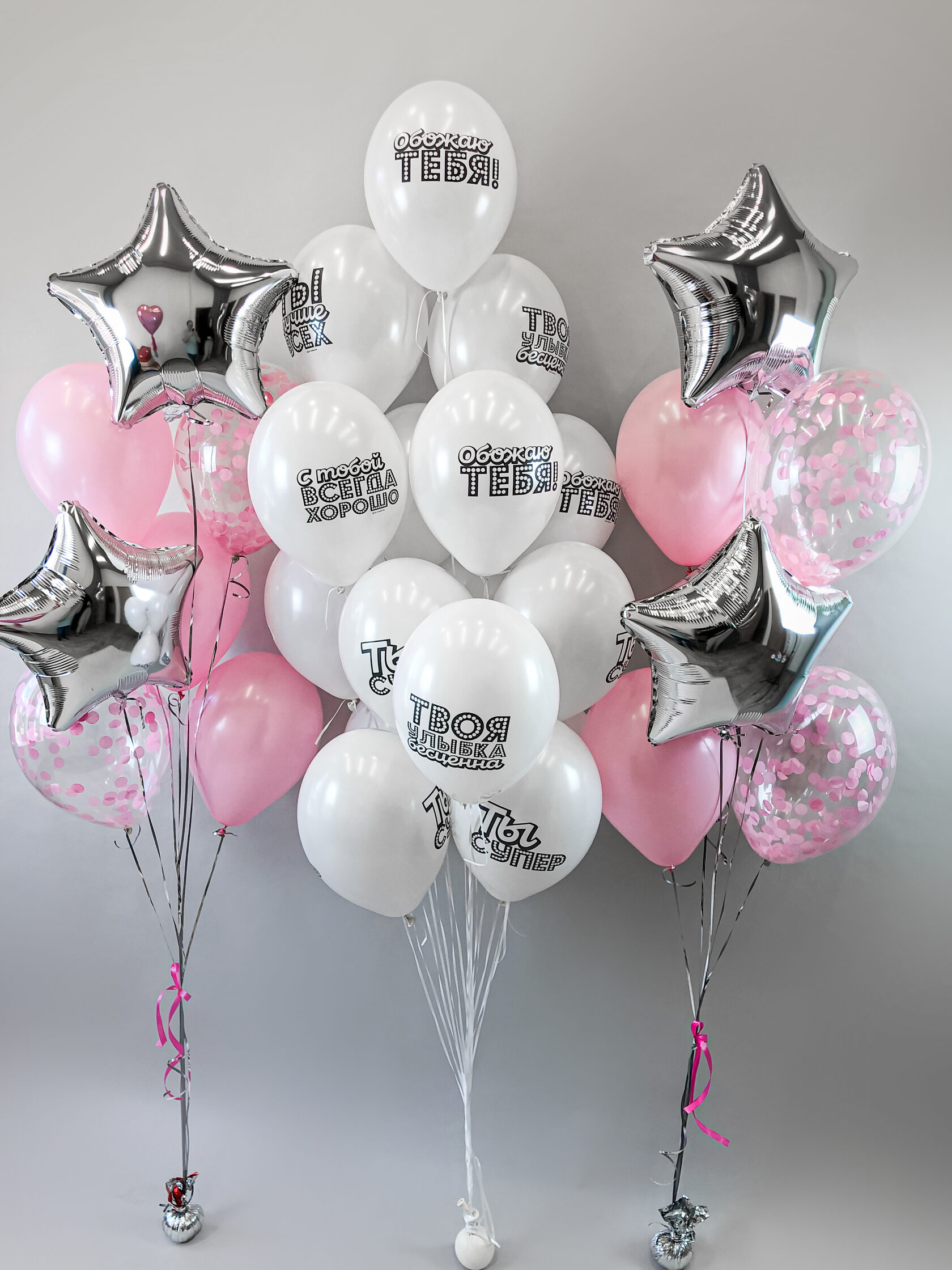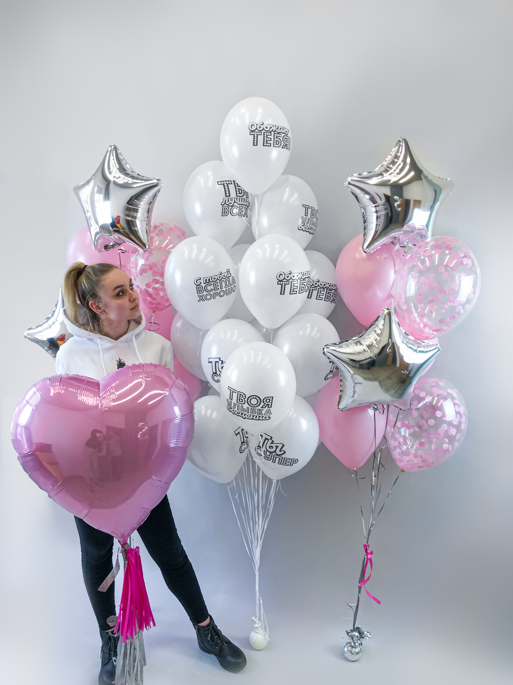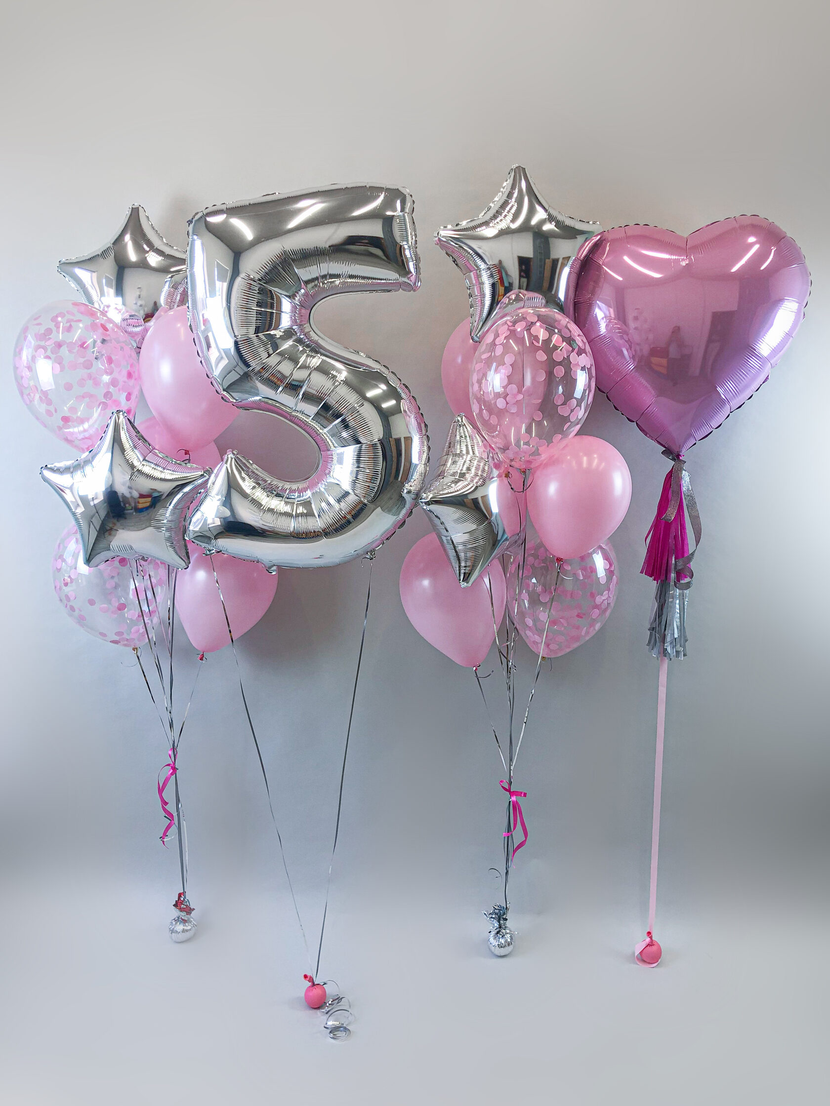 Сет из шаров в серебряном и розовом цвете на 5 лет