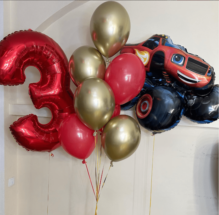 Сет на 3 года с гелиевыми шарами хром и шаром “Вспыш”