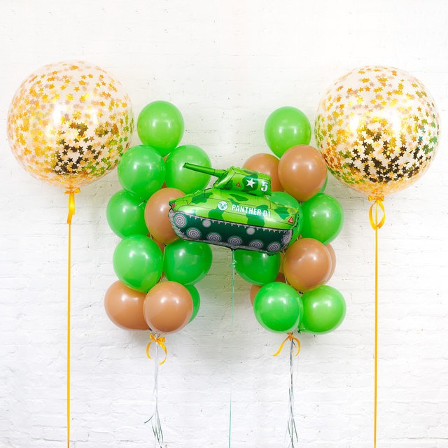 Сет “Настоящему герою” из гелиевых надувных шаров и танком из фольги