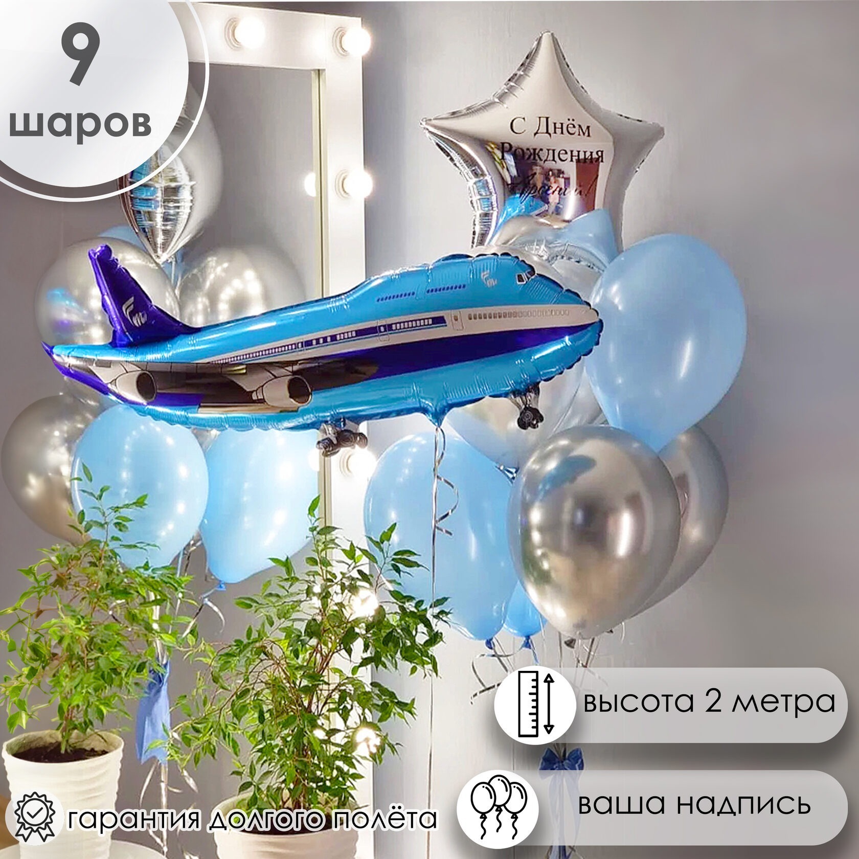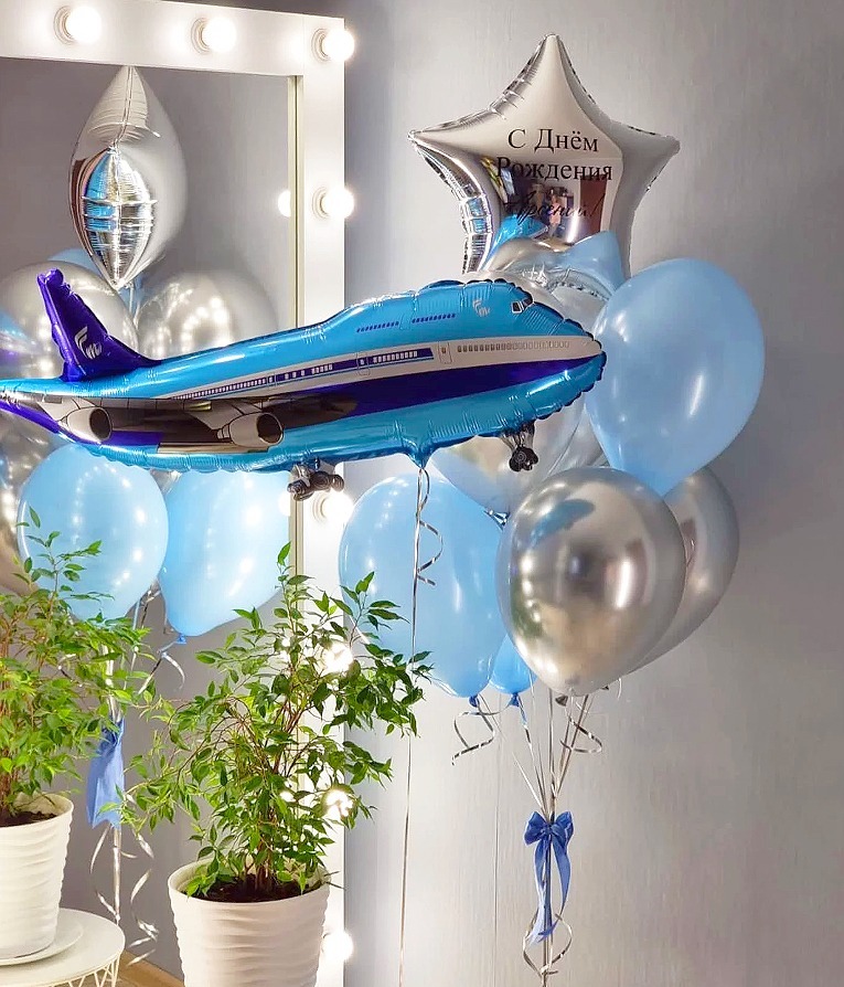 Фольгированная фигура самолёт голубой на грузике.
