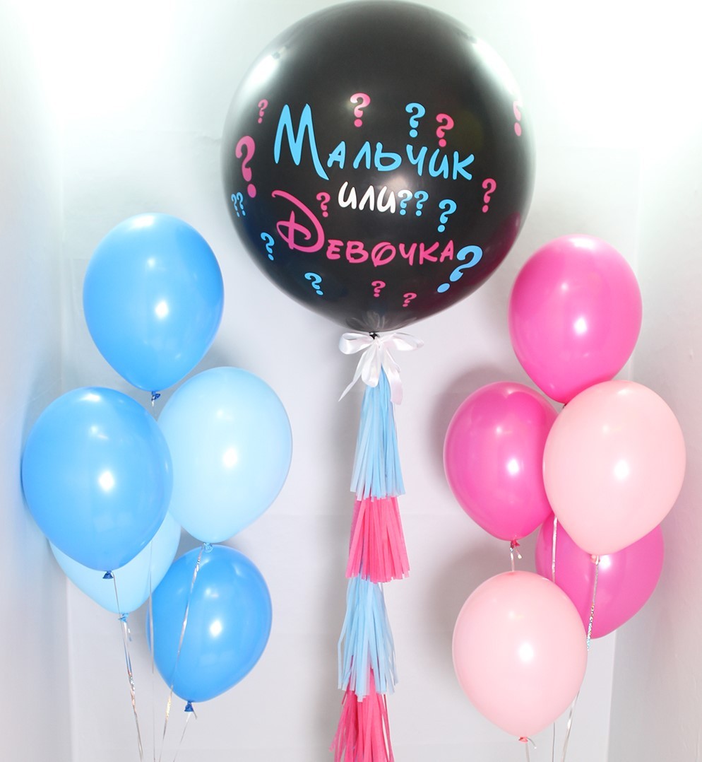 Сет шаров “Мальчик или девочка” с большим черным шаром и наполнением