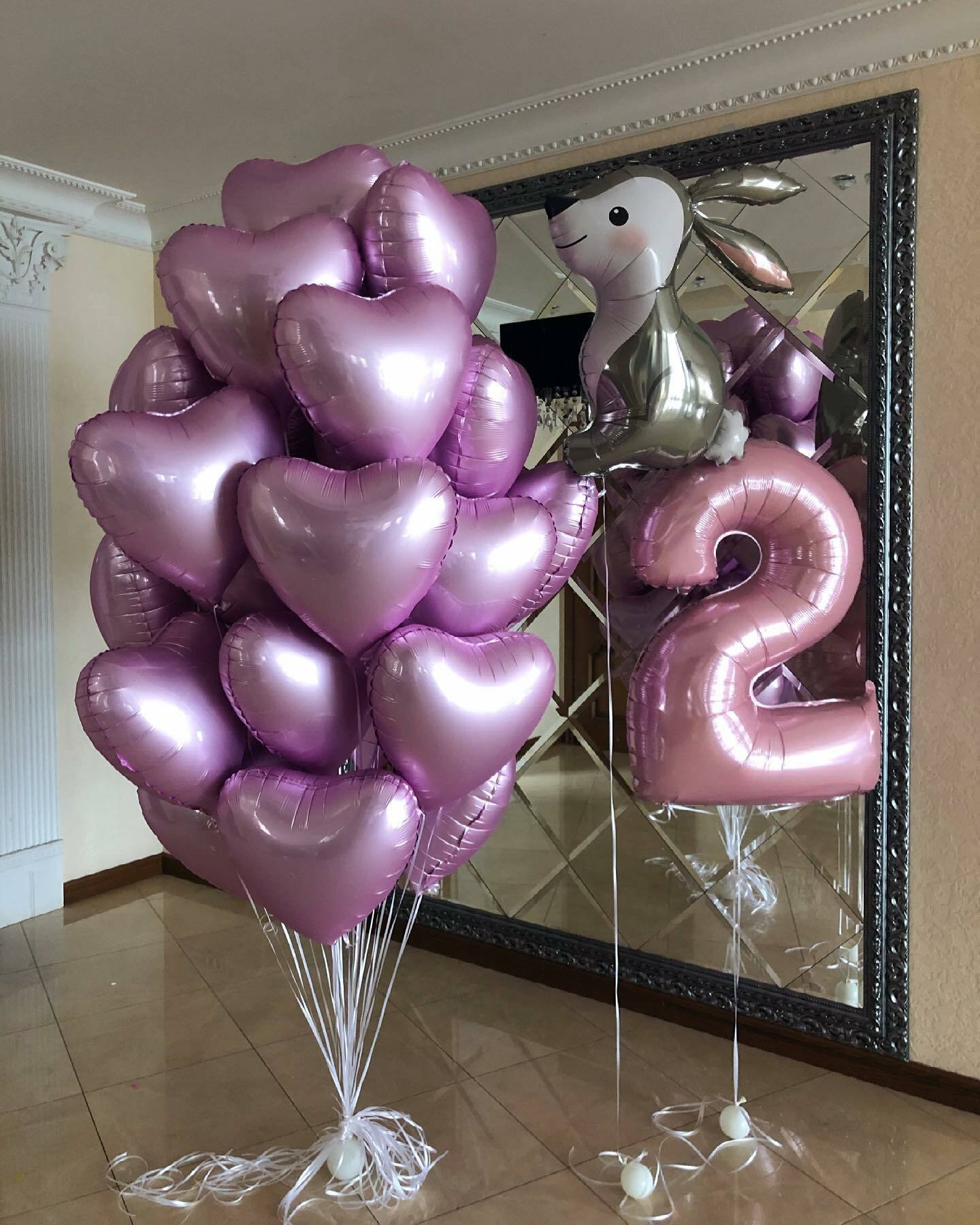 2)фольгированная цифра 2 розовая.