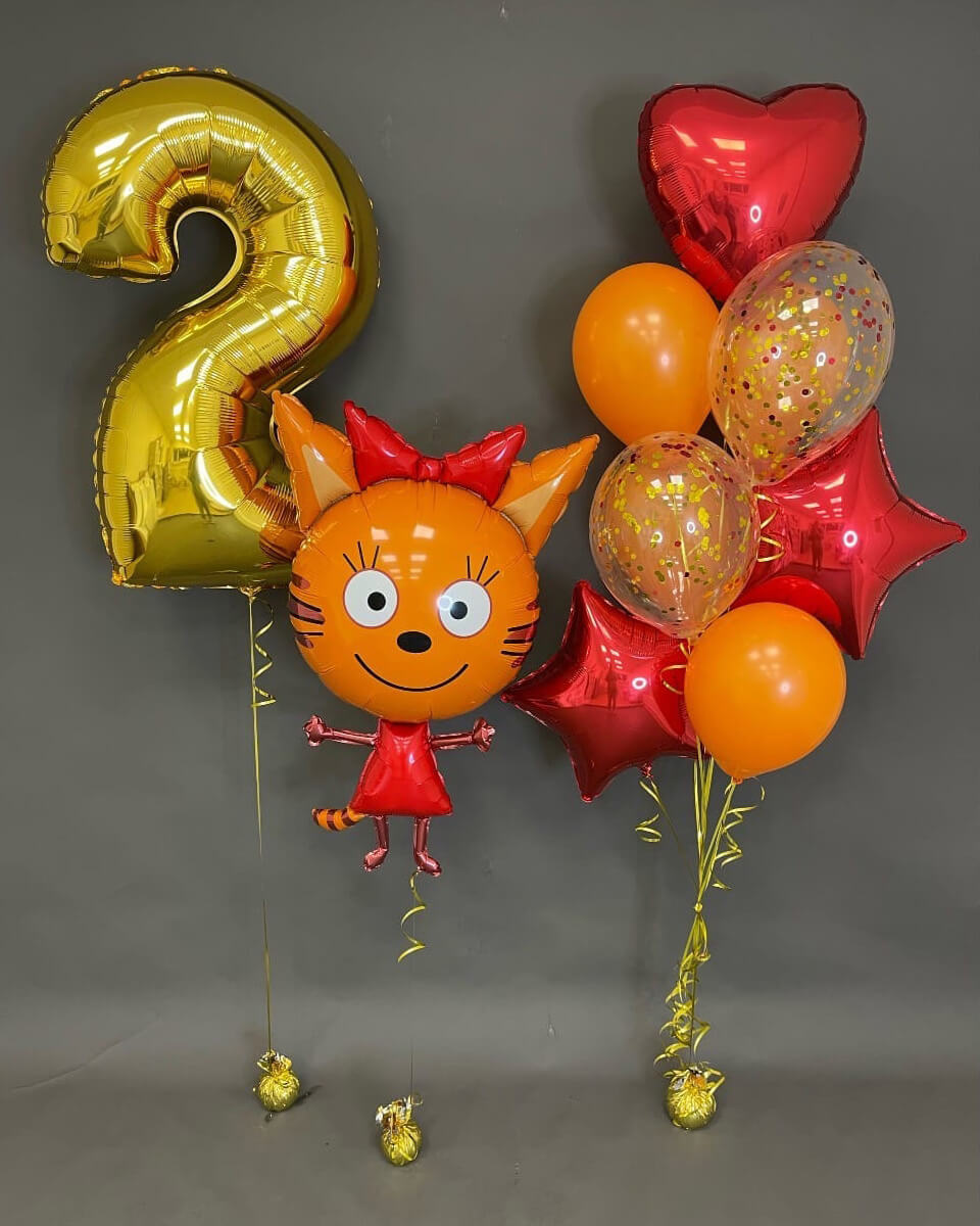 Сет шаров на 2 года с кошечкой Карамелькой