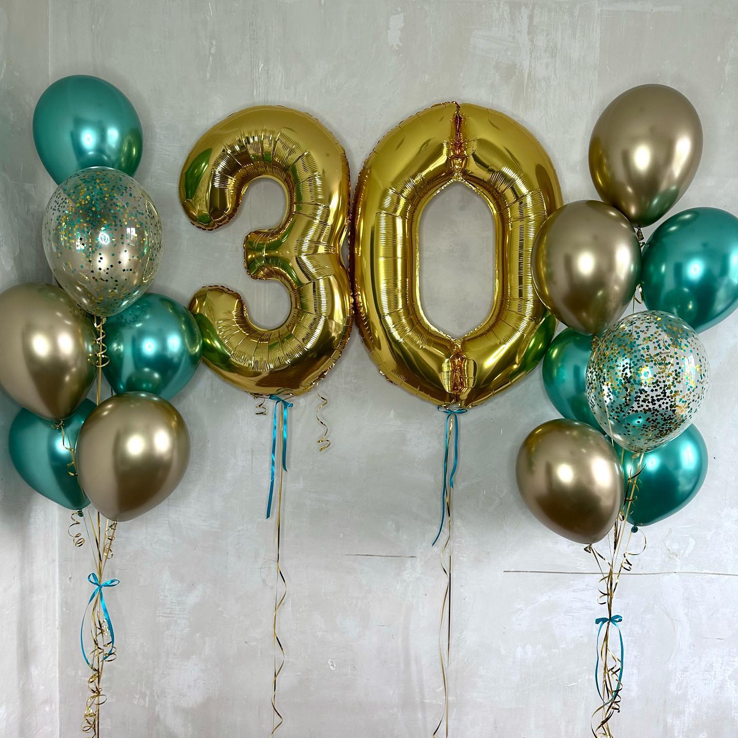 Сет шаров на 30 лет в цветах тиффани-золото