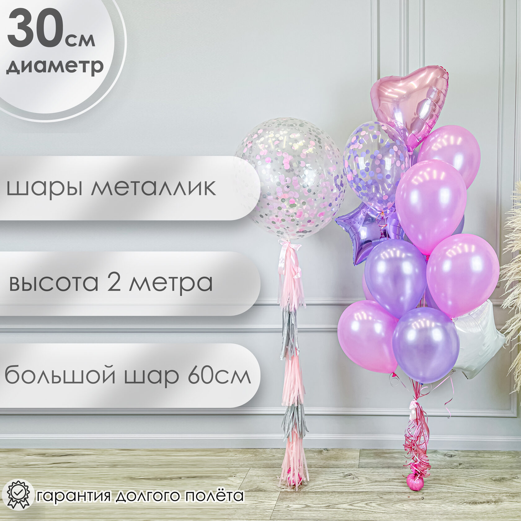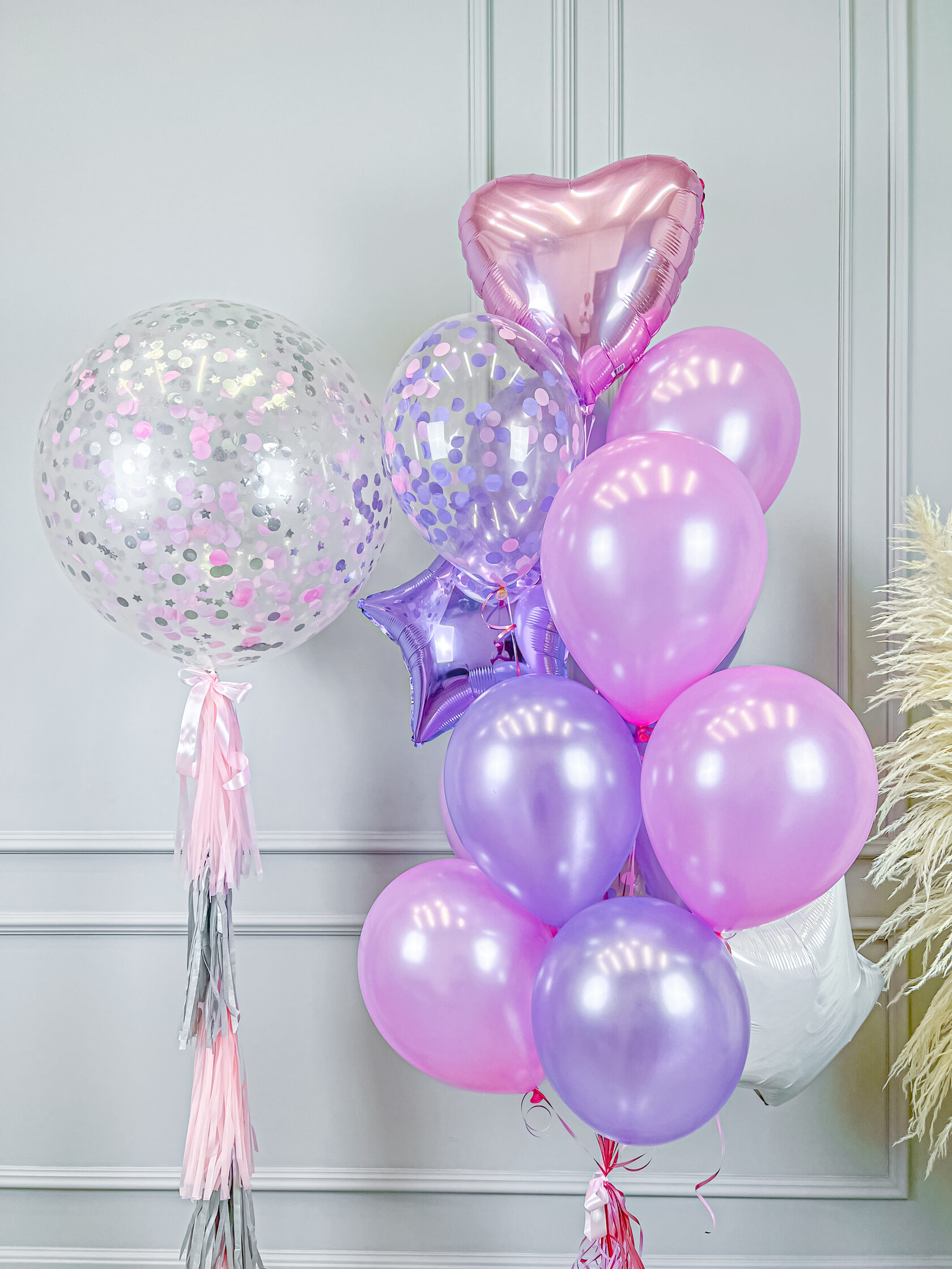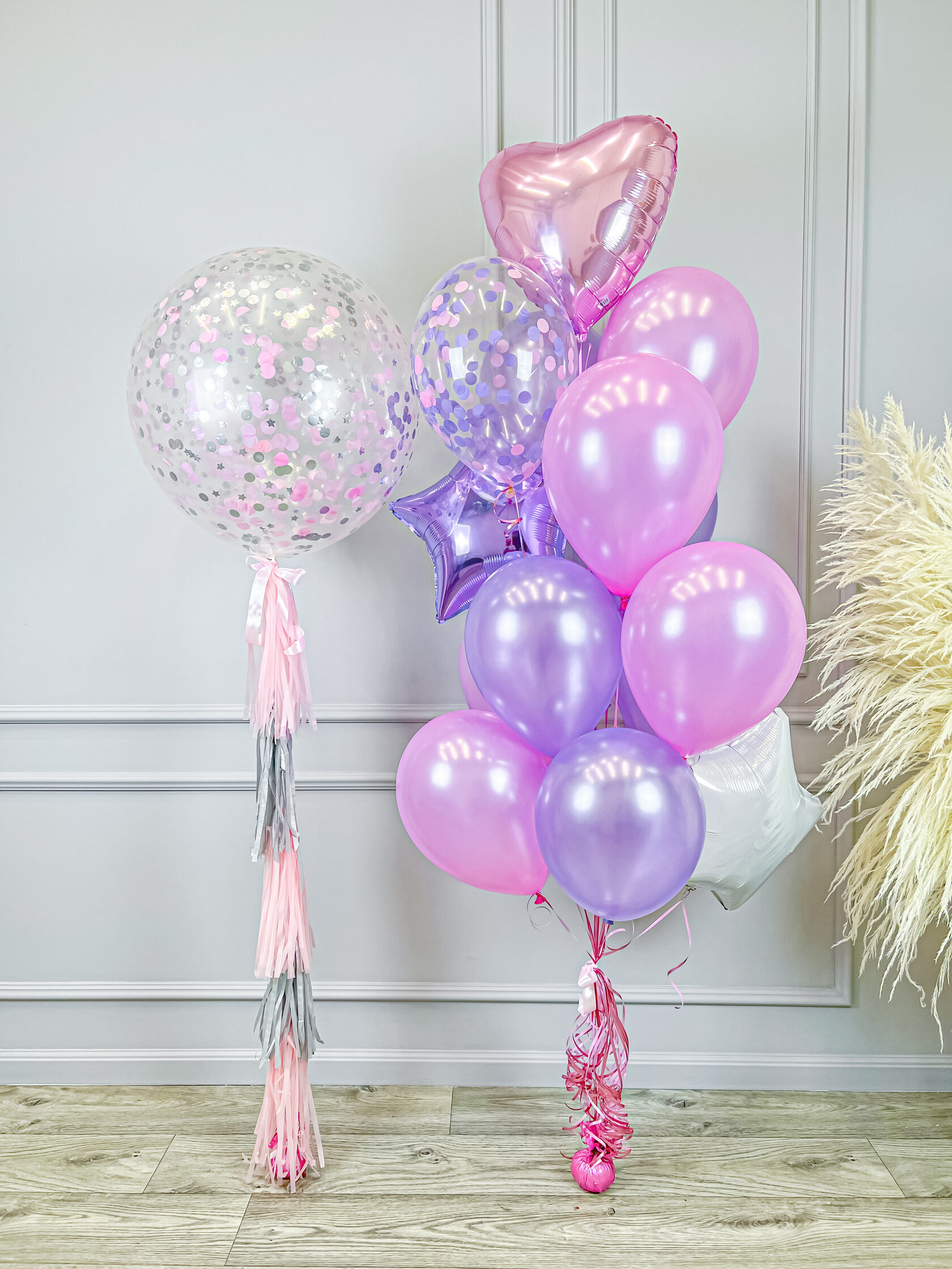 -шар конфетти (розовый и сиреневый круг)- 2 шт;