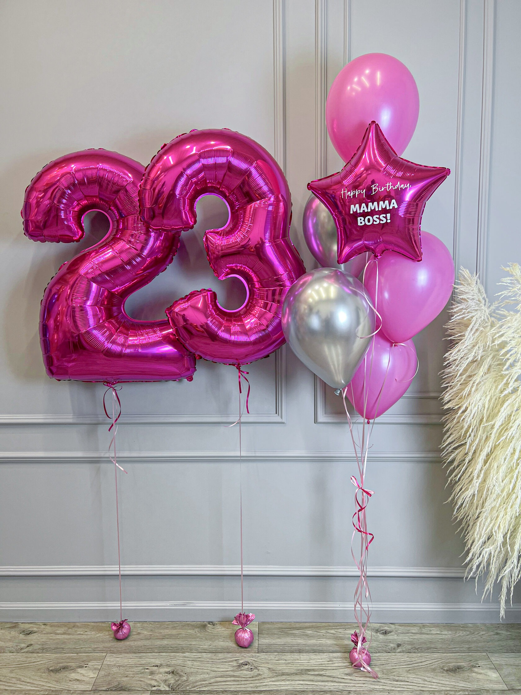 Сет шаров с цифрами в цвете фуксия с вашей надписью