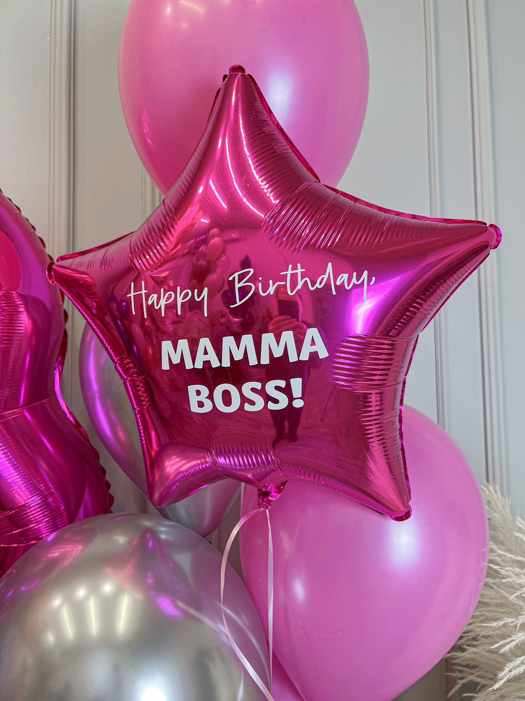 – 1 фольгированная звезда фуксия 46см с индивидуальной надписью