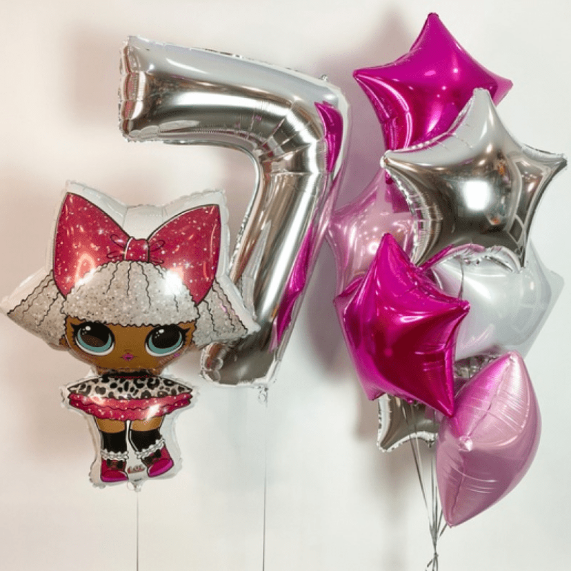 Сет шаров с фольгированными звездами и куклой Лол на 7 лет