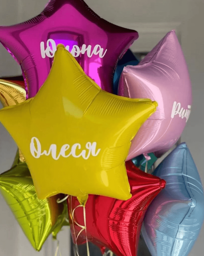 -фольгированные звёзды ассорти 46 см + ваши надписи – 10 шт.