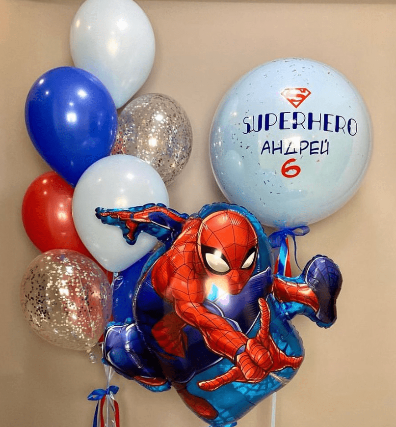 Сет шаров с именным шаром и фигурой “Человек-паук”