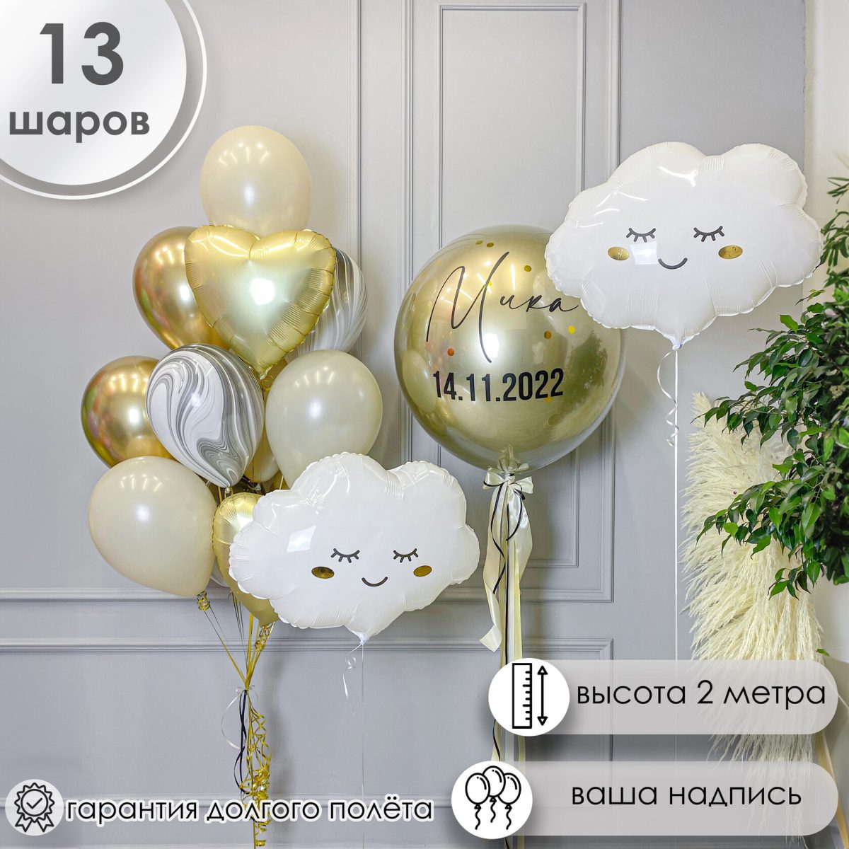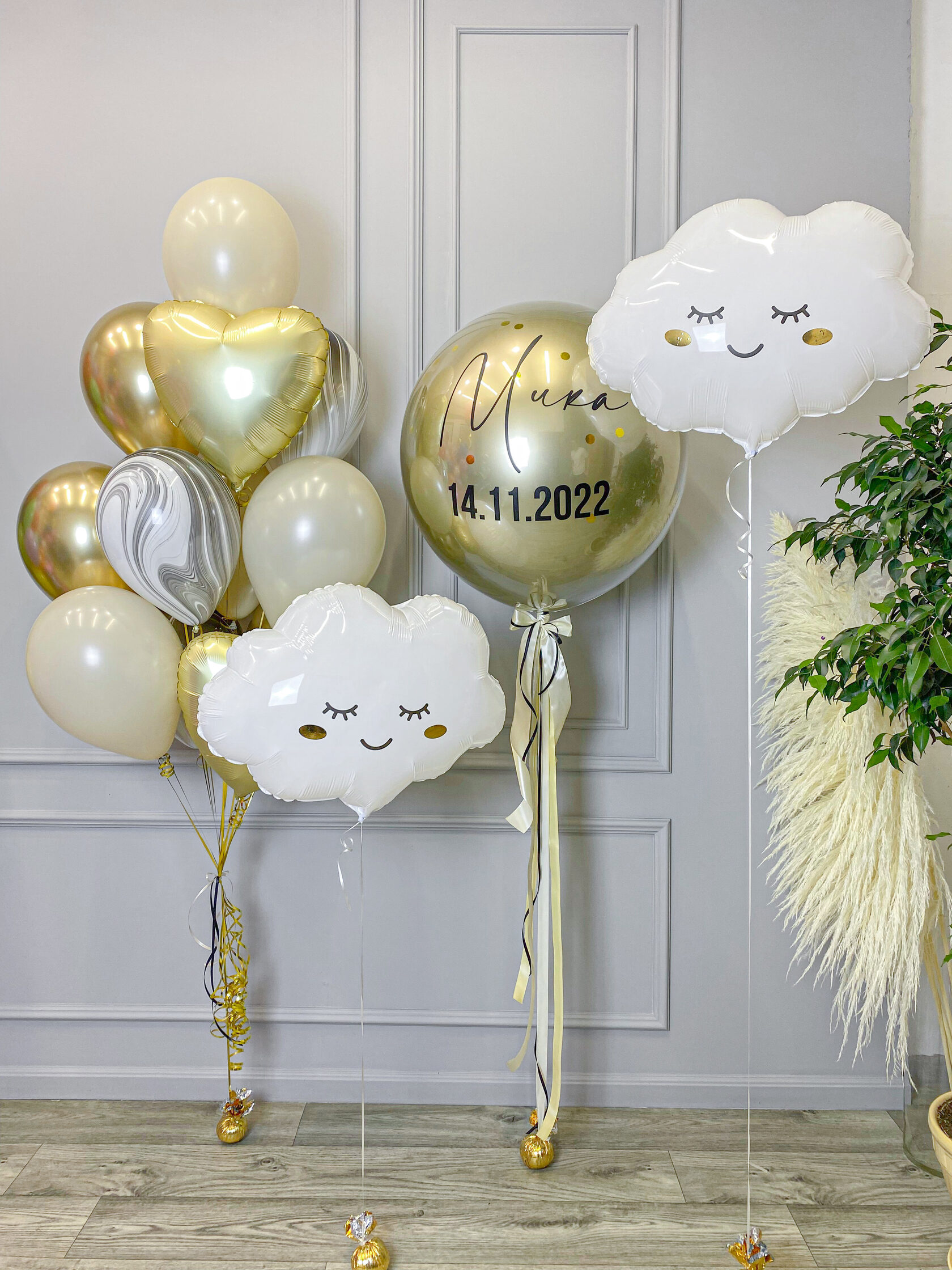 Сет шаров в золотом цвете на выписку мальчика “Добро пожаловать в этот мир”