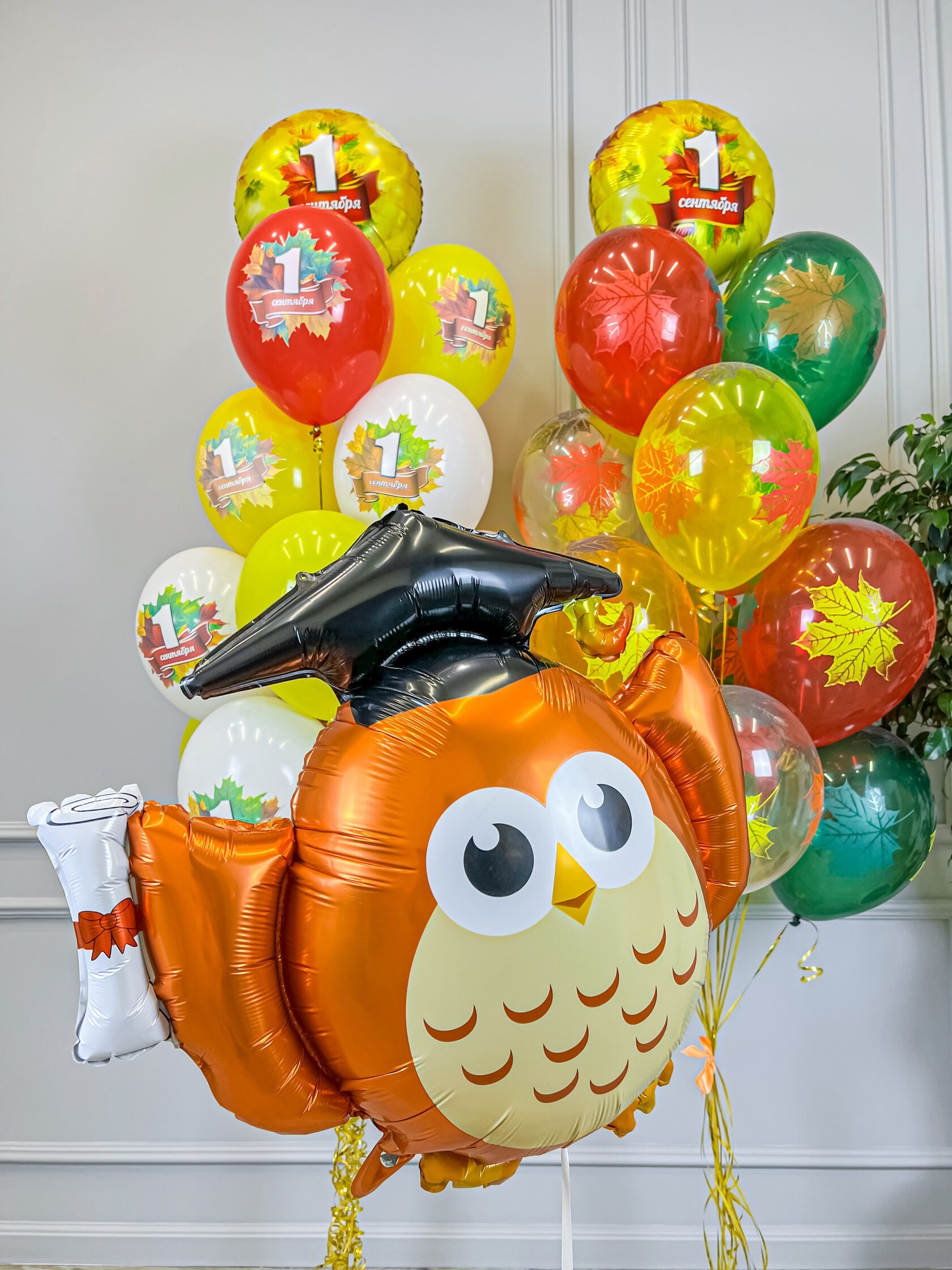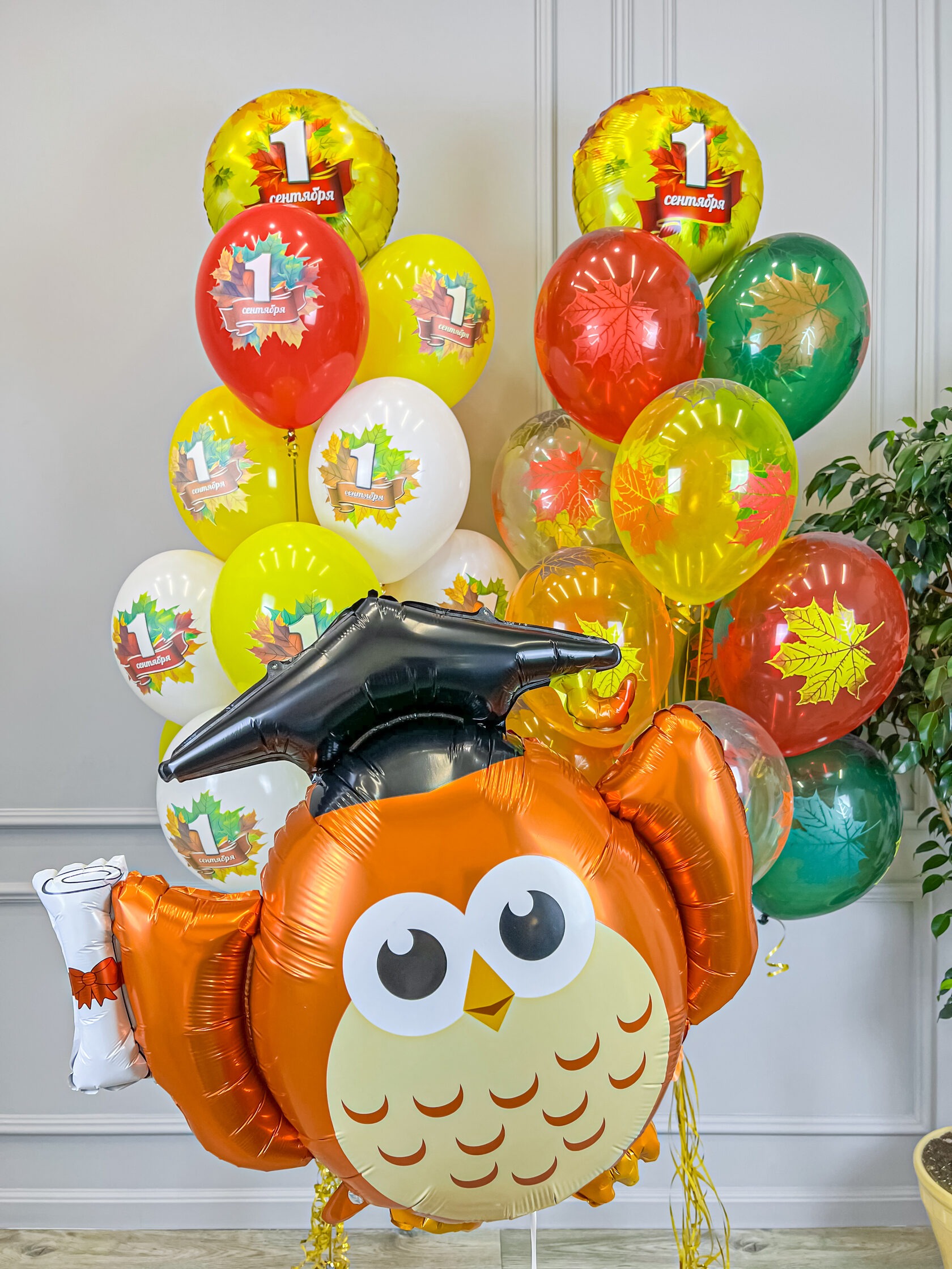 Шар “Сова” и два фонтана гелиевых шаров на 1 сентября