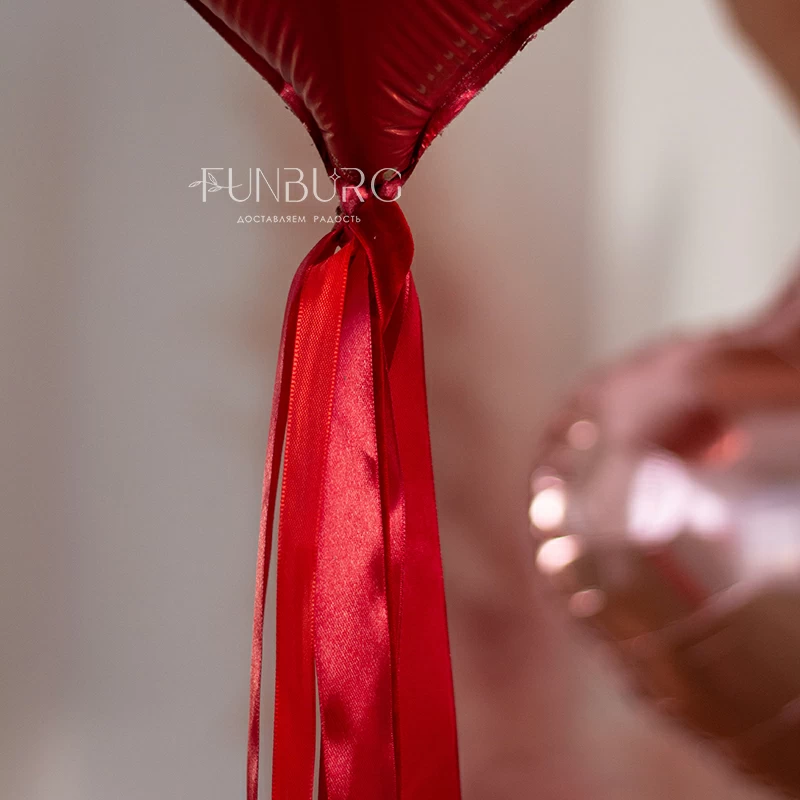 Огромное сатиновое сердце (его диаметр почти 1 метр!) из фольги со шлейфом из лент в тон и самой романтичной надписью создано стать эффектно валентинкой и идеальным способом признания в любви! .