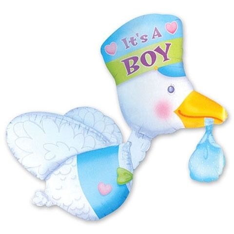 Шар в виде аиста с ребенком в клюве в голубом цвете
