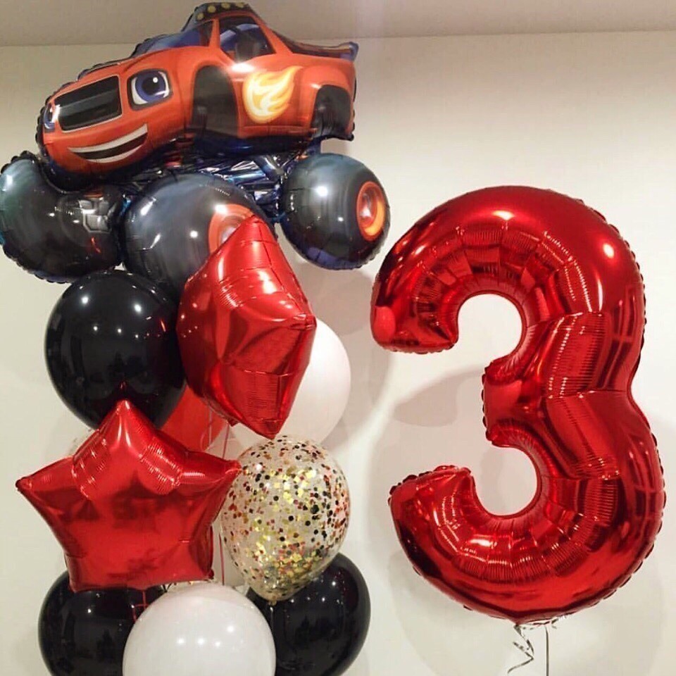 Шарики с машиной в красно-чёрном цвете
