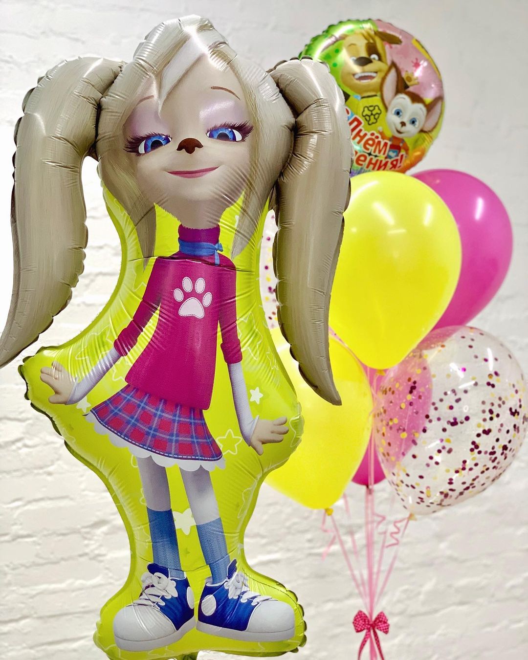 – 2 шара с конфетти (фуксия круг + золото круг)