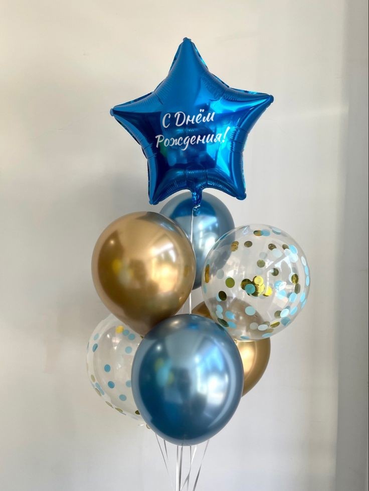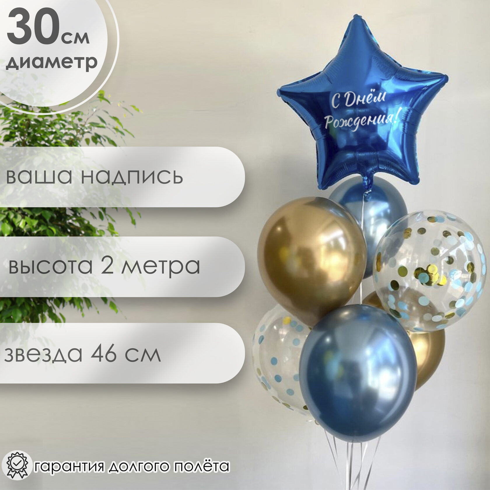– 1 фольгированная звезда синяя 46см с индивидуальной надписью